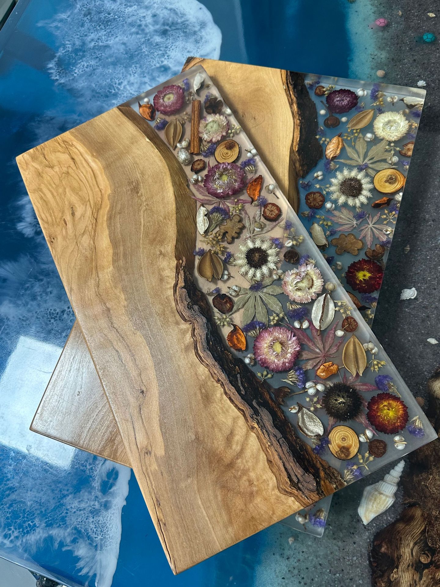Поднос из эпоксидной смолы с настоящими цветами и деревом, десертная тарелка для кафе, декоративная тарелка для гостиной