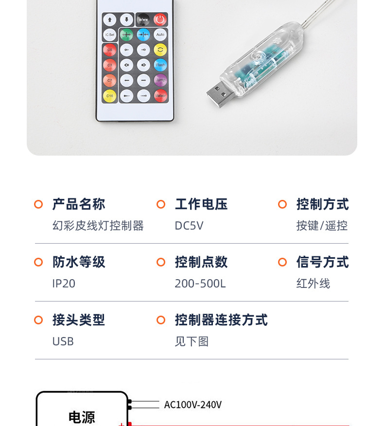 Обработка и кастомизация цветных светодиодных лент, 24-клавишный инфракрасный пульт управления, цветные светодиодные ленты, USB пульт управления