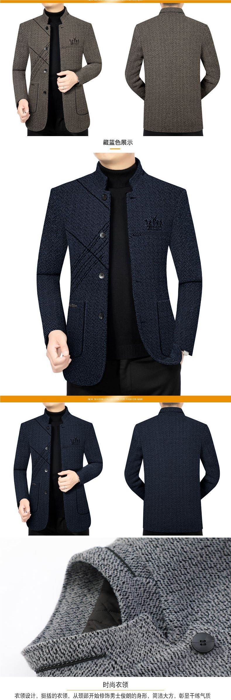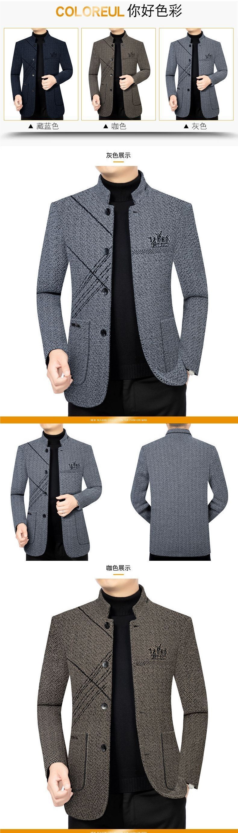 Толстое мужское шерстяное пальто с флисовой подкладкой 2025 осень, куртка для среднего возраста, деловая повседневная, куртка для папы с воротником-стойкой