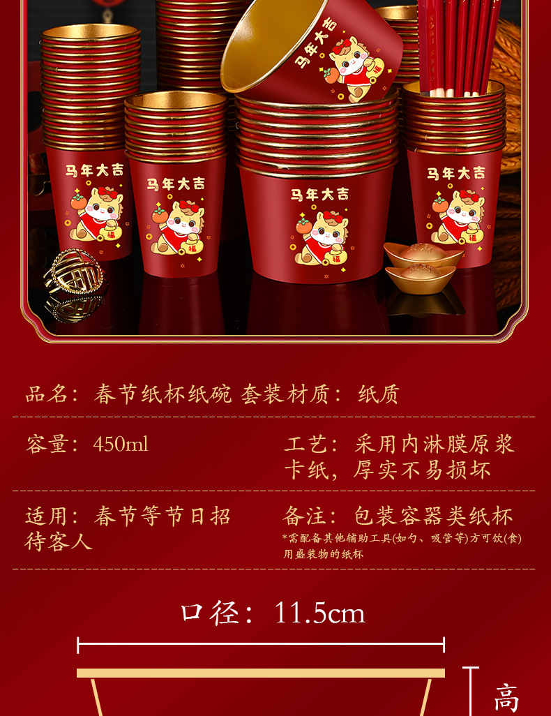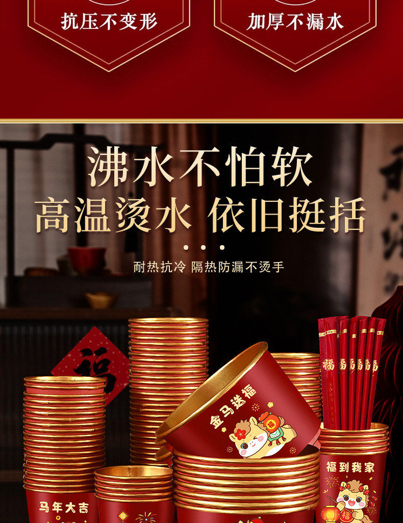 ![]() | Red | Paper bowl golden horse blessing 500ml*20 pieces | ¥9.8 / ≈ 118 ₽ | 9994 | 6139371191571 | |