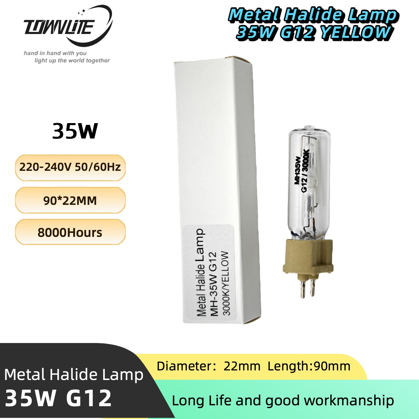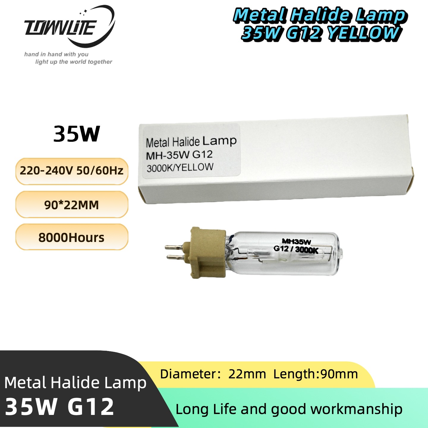 Специальная для инженерии высокоэффективная металлогалогенная лампа, одноразовая G12 35W 3000K, теплый цвет
