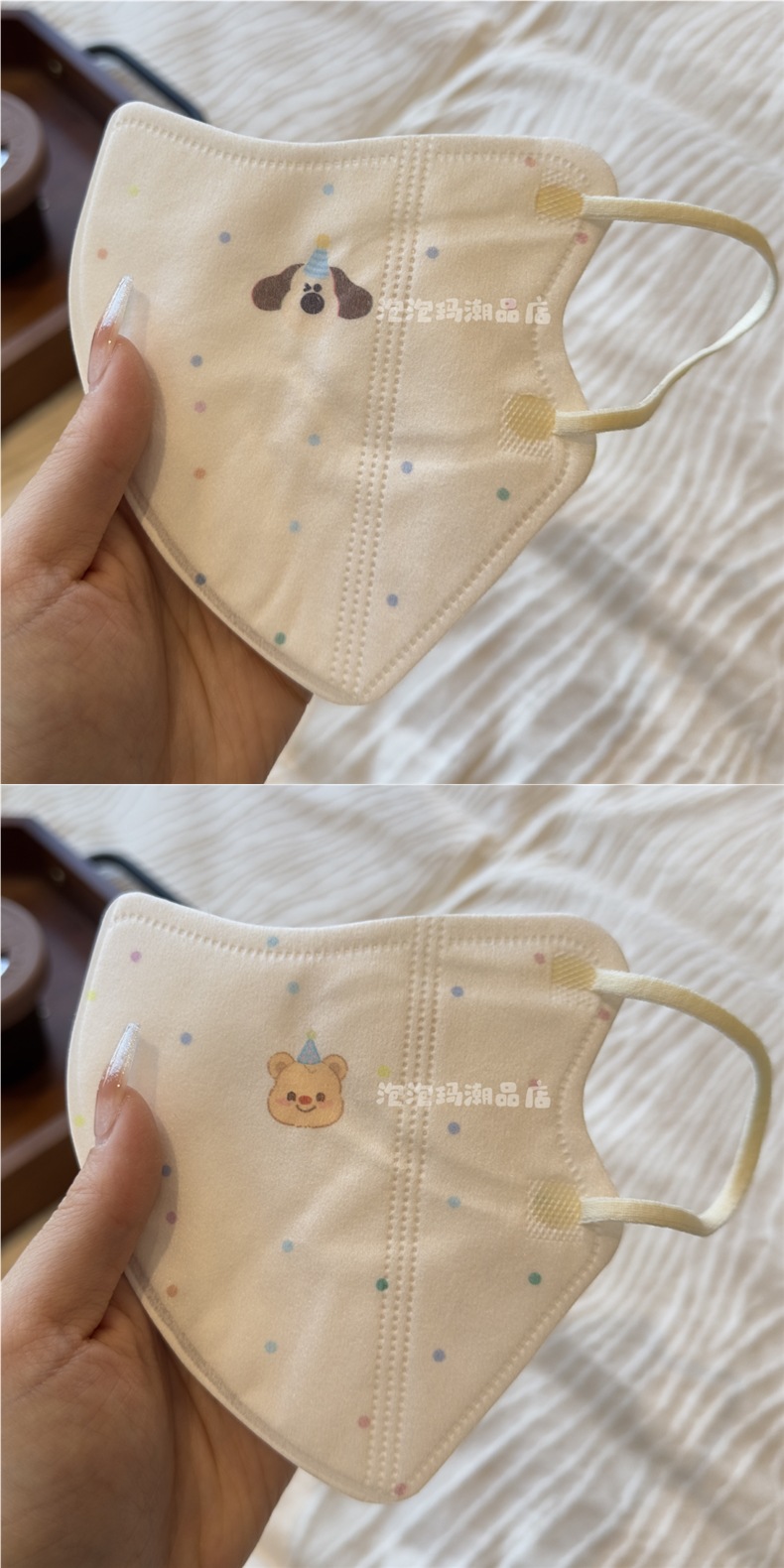 Маска для собак кремового цвета с 3D горошком и мультяшным принтом для взрослых, высокий эстетический уровень, простой стиль колледжа, осветляющий эффект