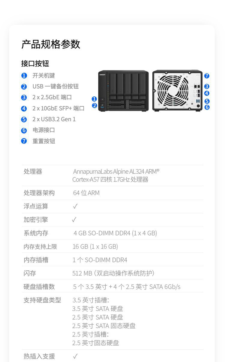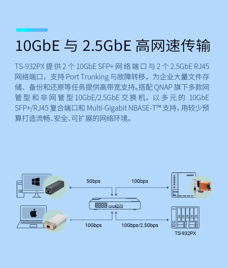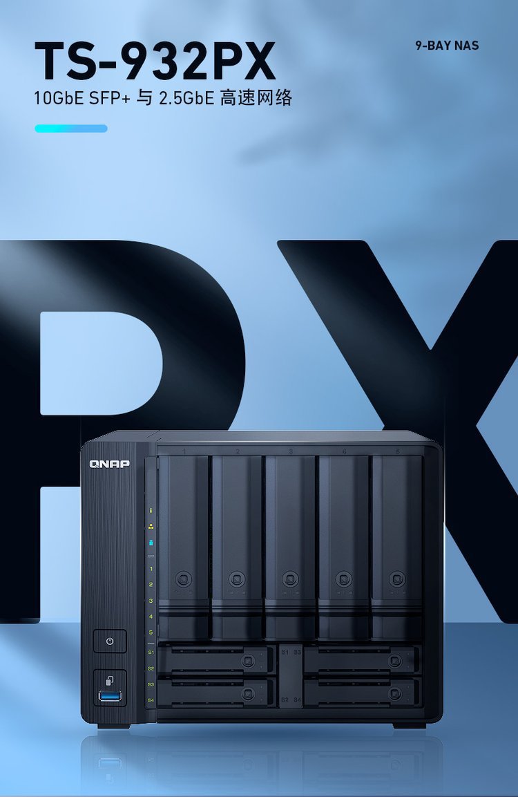Сетевой сервер класса Enterprise Qnap Ts-932Px-4G с девятью отсеками, 10Gbe + 10Gbe 2.5Gbe высокая скорость