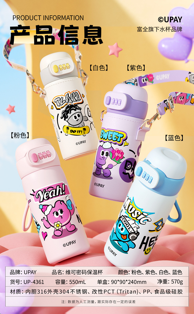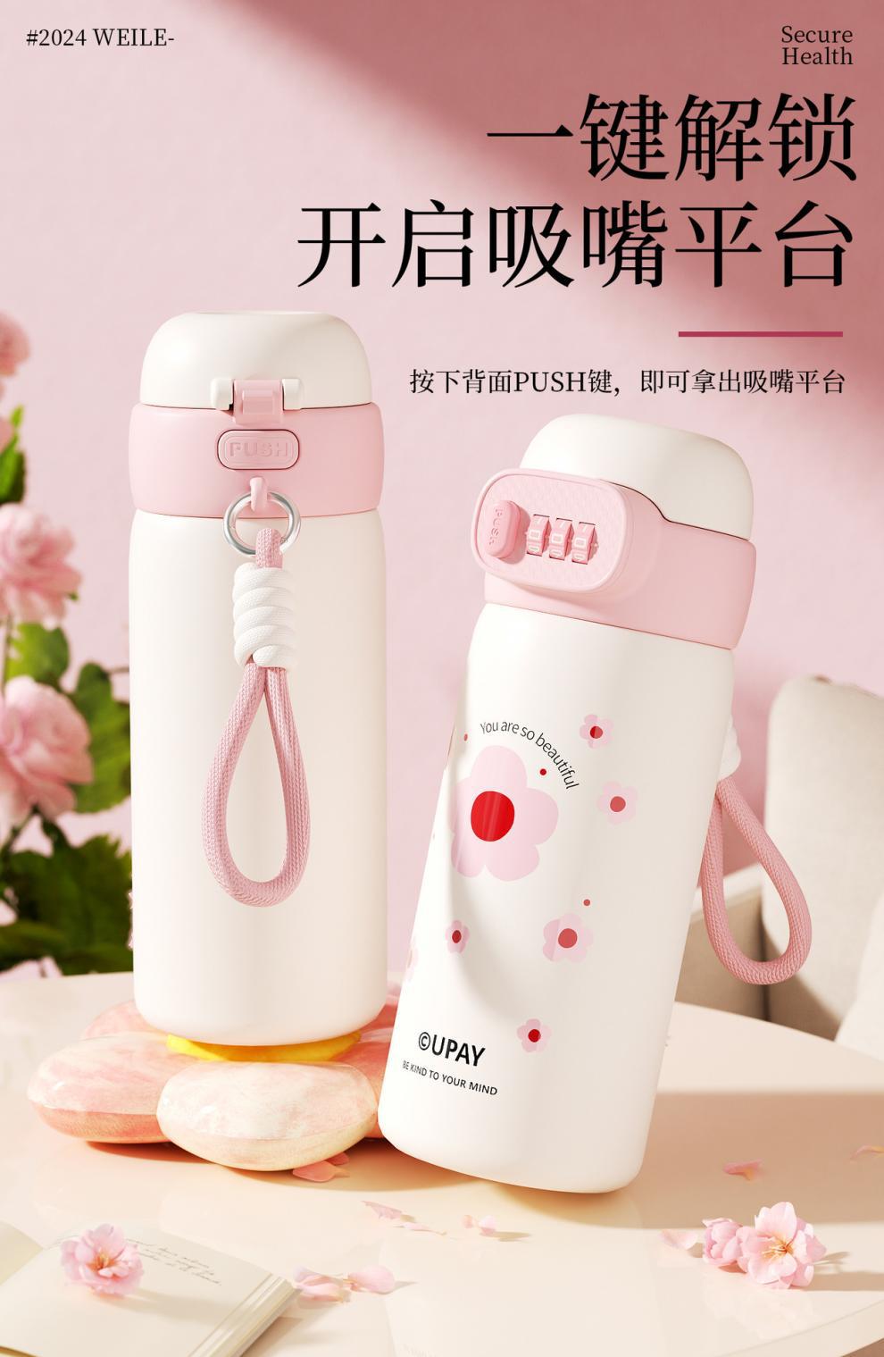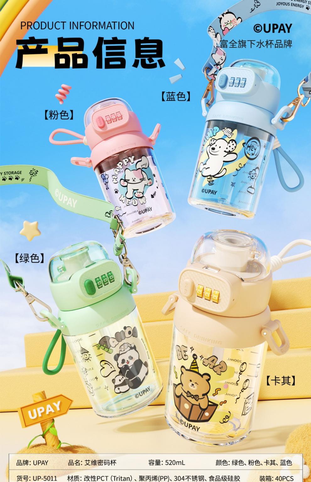 Водяная бутылка для девочек, отпечаток пальца, водяной стакан, портативный стакан с соломинкой, специальный замок для школьников