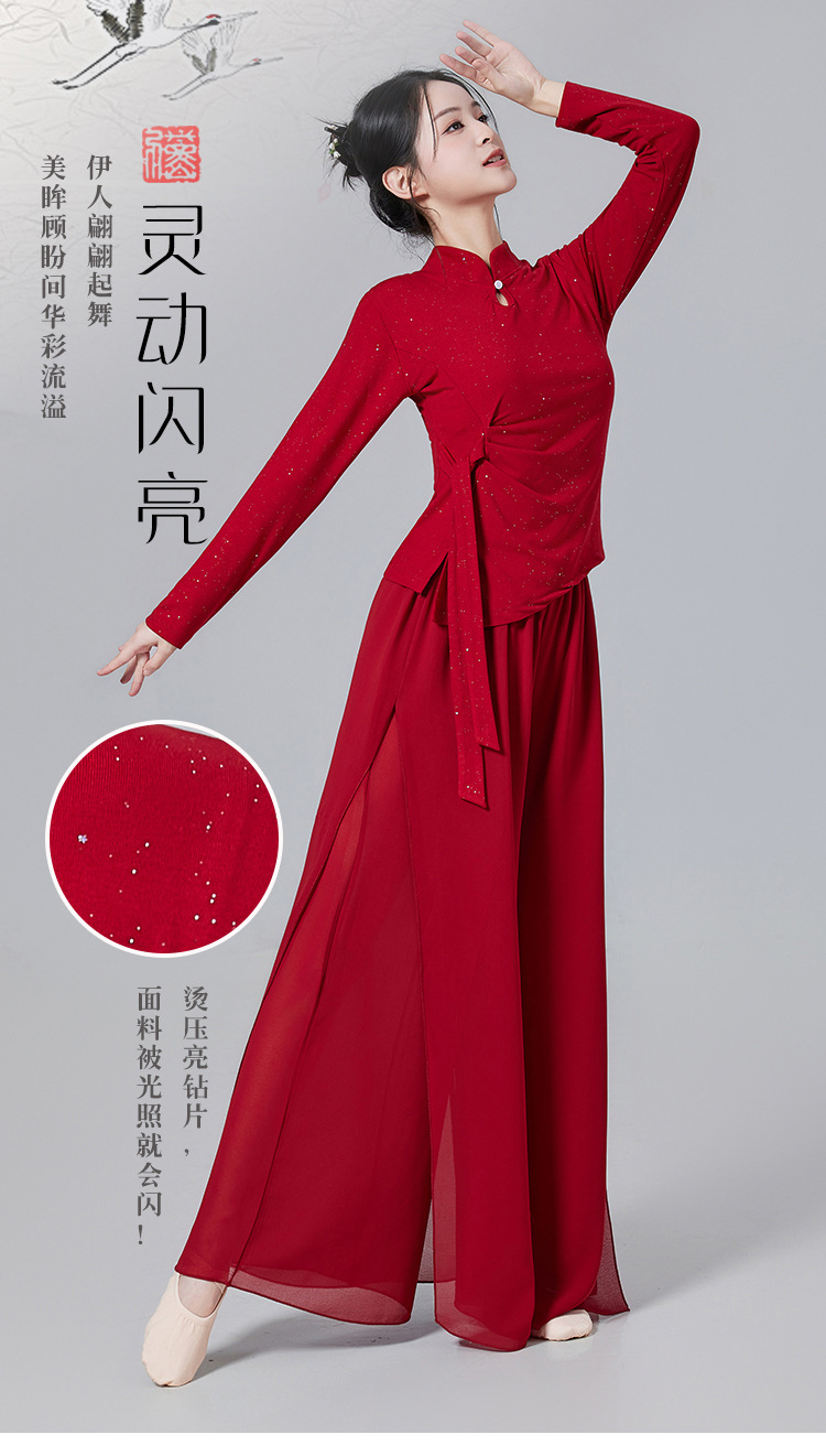 Новый танцевальный костюм для классического и китайского танца с горячими стразами и струящимися лентами