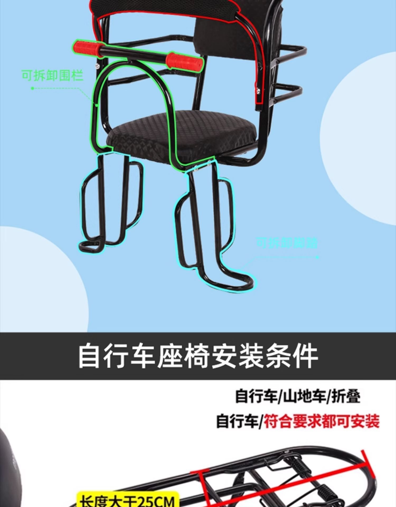 Заднее детское сиденье для велосипеда, складное сиденье для детей, рама для горного велосипеда