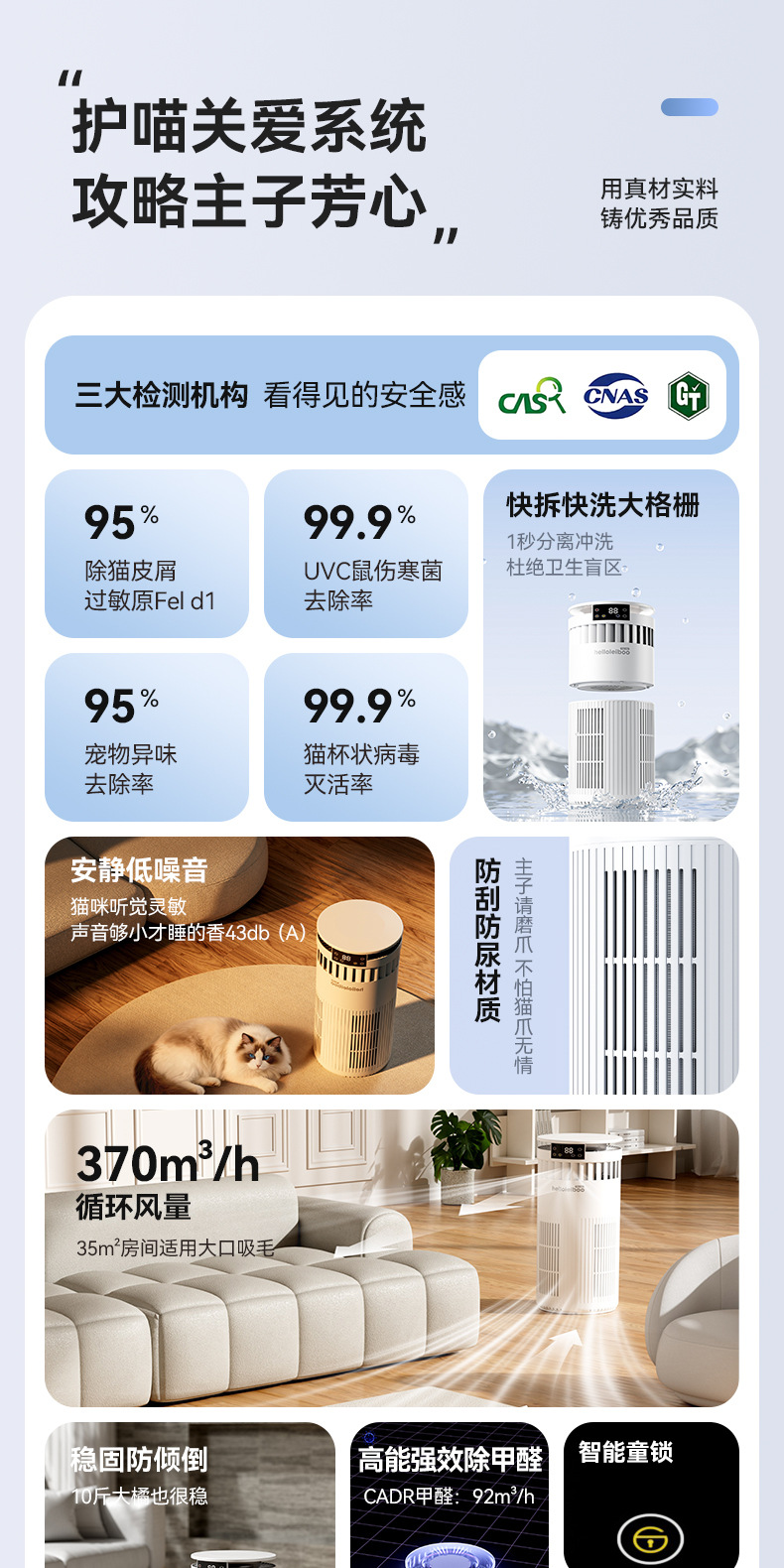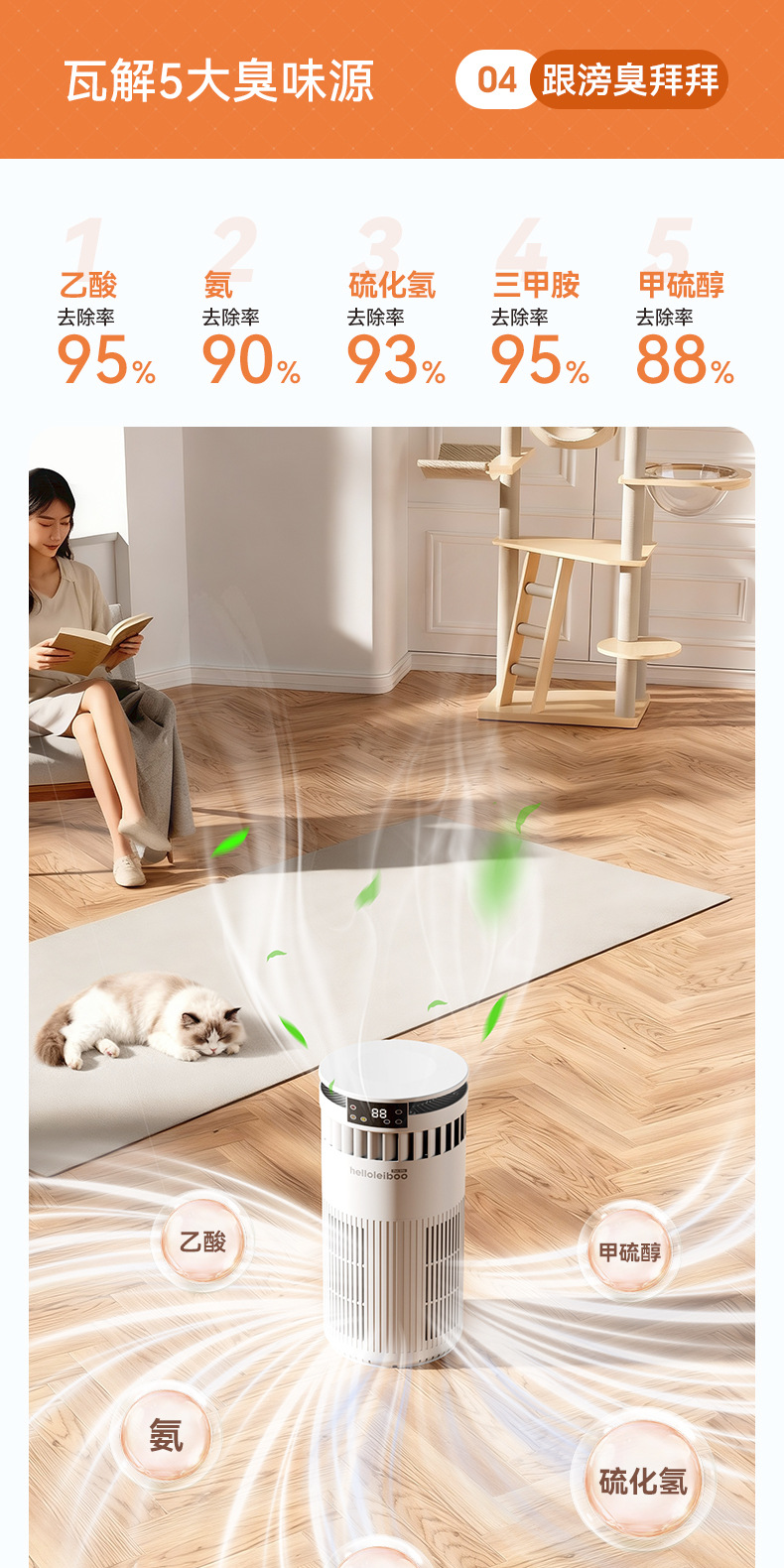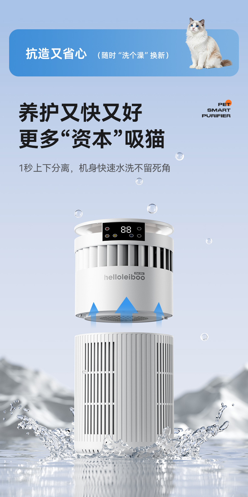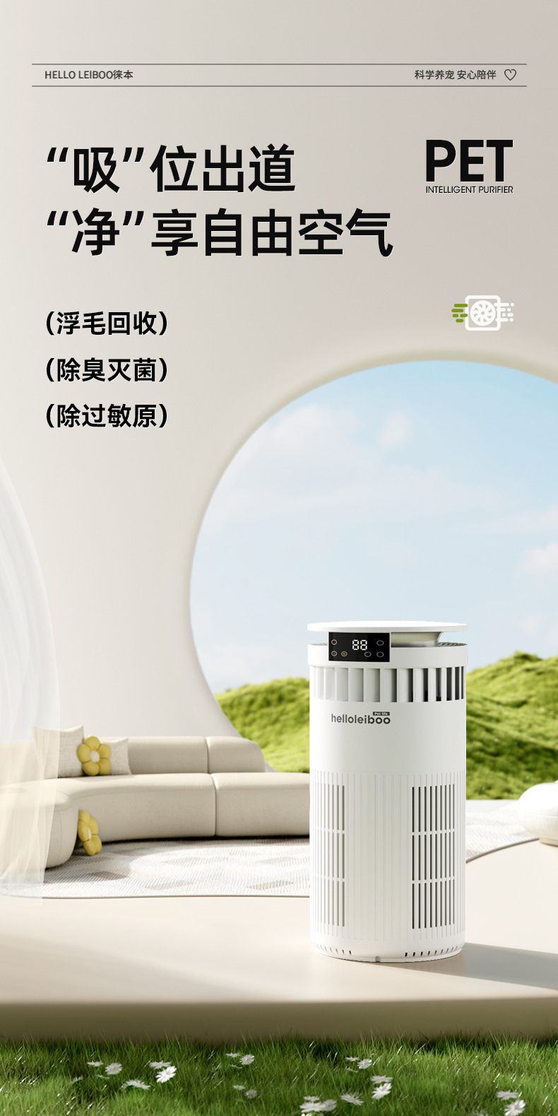 Очиститель воздуха Laiben для домашних животных, полностью автоматический, для сбора шерсти кошек и удаления плавающей шерсти, специальное удаление пыли, дезодорация и дезинфекция бактерий для ухода за питомцами