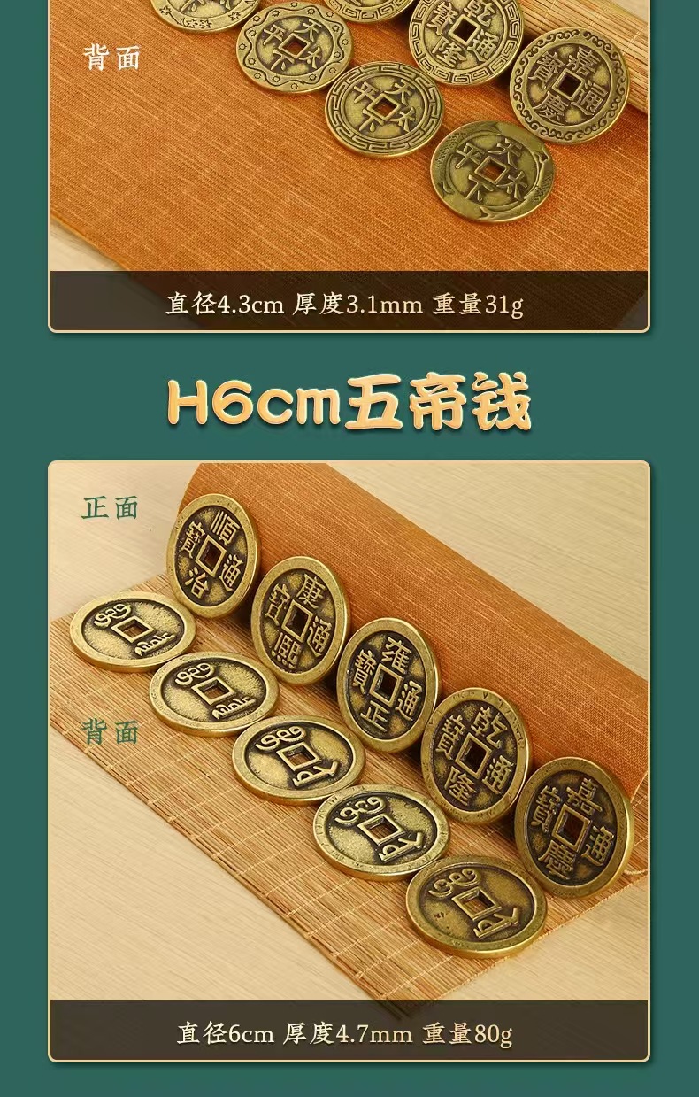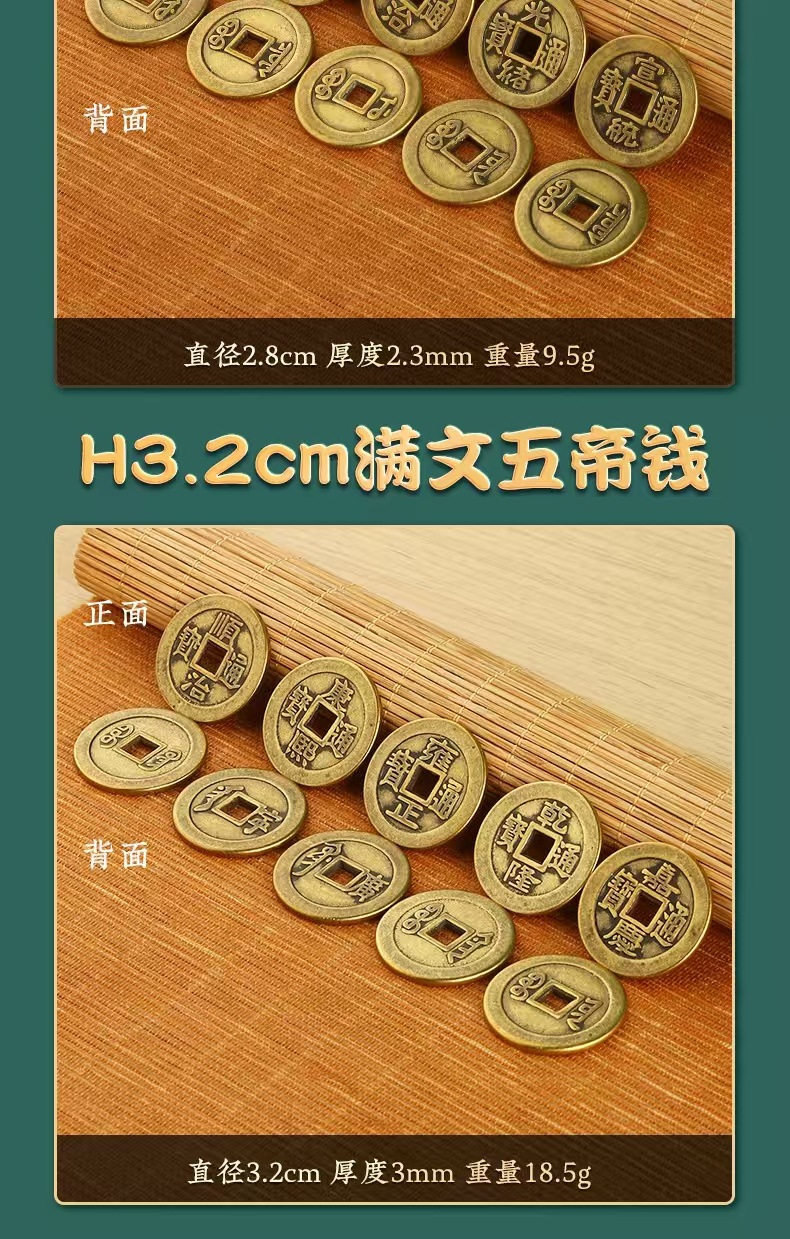 Утолщенные медные монеты пяти императоров, большие латунные монеты, древние монеты для входных дверей, Канси, Цяньлун, Юнчжэн, Шуньчжи