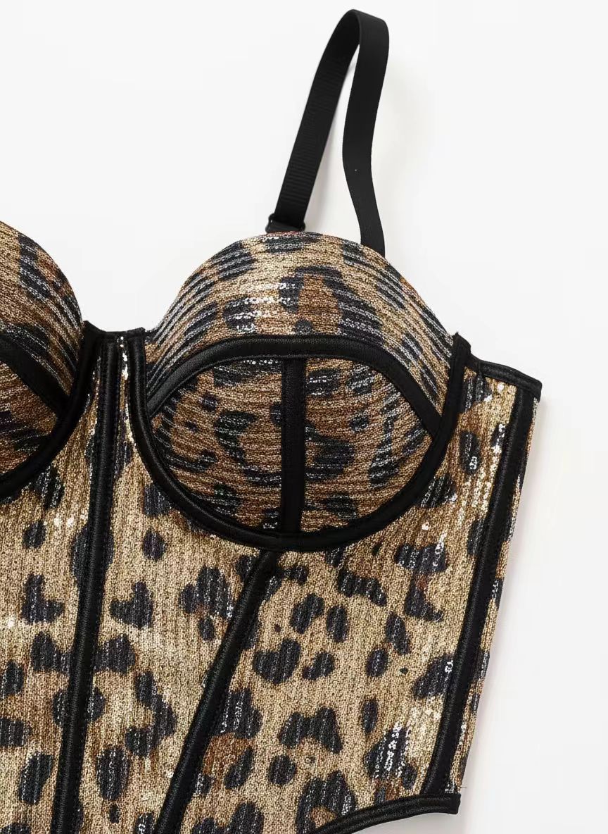 Кросс-бодрящий бюстгальтер с леопардовым принтом и сеткой, с вшитыми чашечками, сзади на кнопках, формирующий и облегающий бюстгальтер