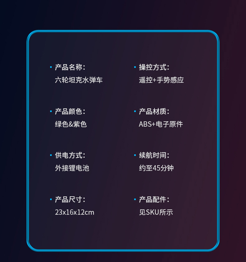 ![]() | [handle + gesture sensing] black and blue-six-wheel water bomb tank vehicle | Play version [3 lithium batteries] | ¥72.0 / ≈ 867 ₽ | 2000 | 5976257233459 | |