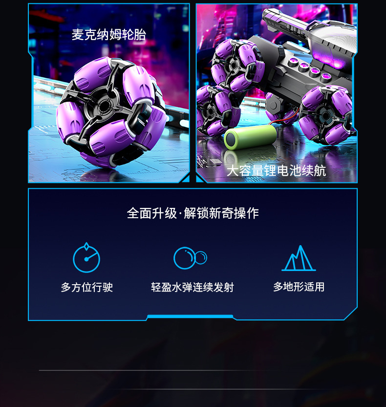 ![]() | [handle + gesture sensing] black and purple-four-wheel water bomb tank vehicle | Battery life version [2 lithium batteries] | ¥57.0 / ≈ 687 ₽ | 2000 | 5976257233473 | |