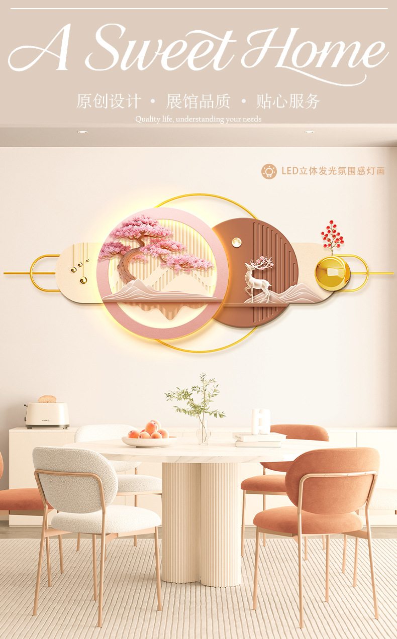 Новый стиль Фулу удачная ресторанная стерео висящая живопись светодиодная светящаяся декоративная фреска высококлассная ресторанная декоративная живопись