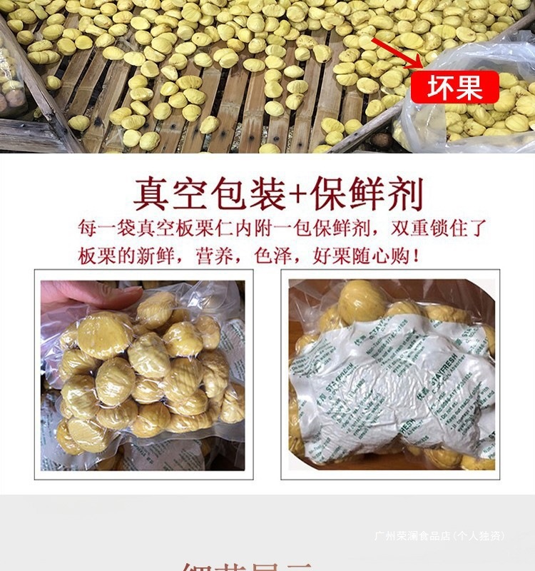Свежие очищенные каштановые ядра, вакуумная упаковка сладких каштанов, супер каштановое мясо, сырые каштаны из Цяньси Лутян