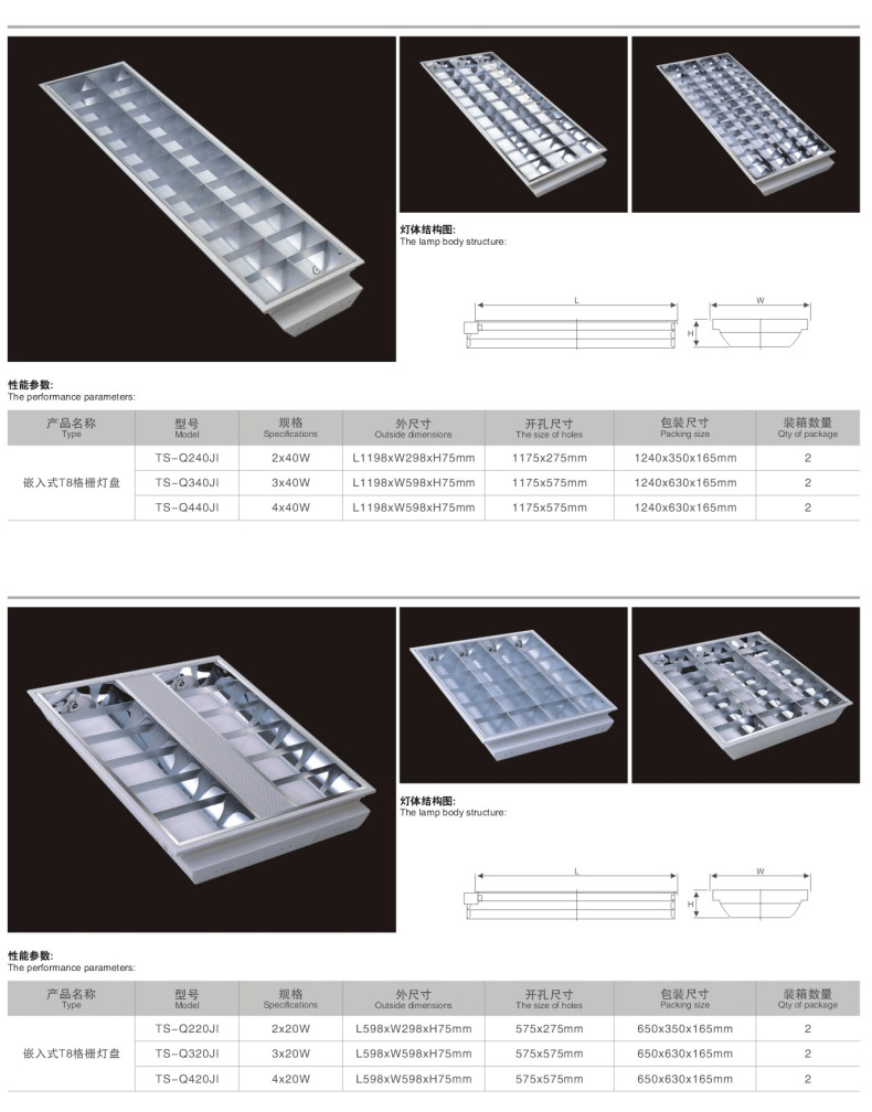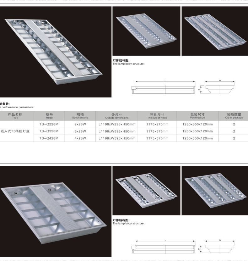 T8 решетчатая панель 3*20W скрытая матовая яркая инженерная решетка