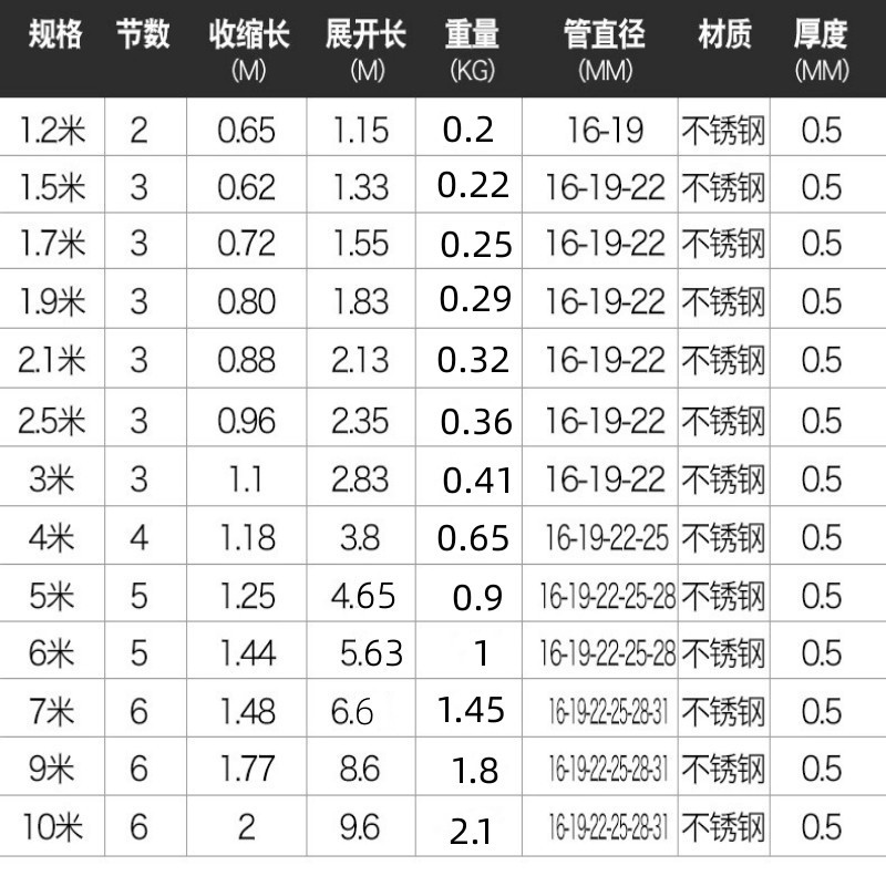 ![]() | 1.9m + new knife + hook + cage hook + small saw | White pole | ¥14.5 / ≈ 172 ₽ | 500 | 6136728474682 | |