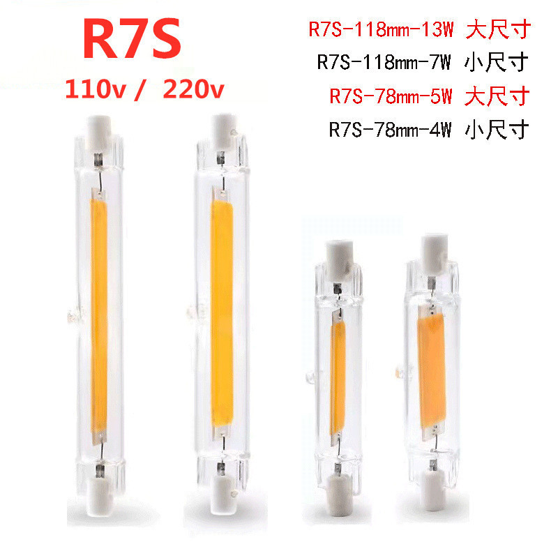 светодиодная подсветка R7S стеклянная трубка Cob лампа 10W20W78мм118мм189мм двусторонняя лампа заменяет галогеновую лампу