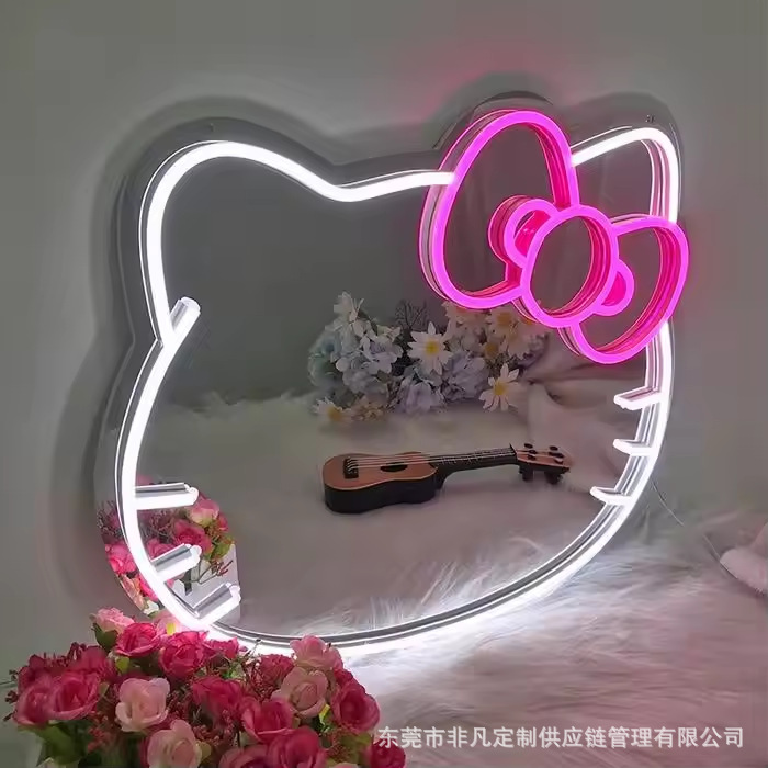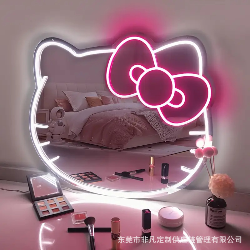 Неоновый знак Hello Kitty персонализированный неоновый свет зеркало для макияжа с светодиодным знаком