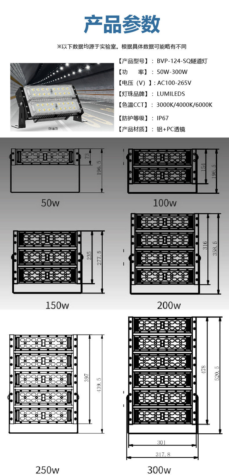 Светодиодный туннельный свет модуль прожектор 300W уличный водонепроницаемый футбольный баскетбольный квадратный высокопольный рекламный свет