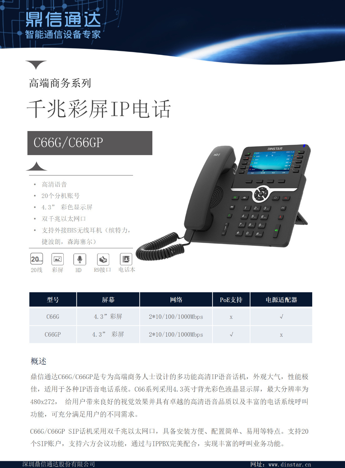 Dinstar Dingxin Tongda C66Gp Гигабитный цветной экран SIP телефон IP телефон VoIP черно-белый