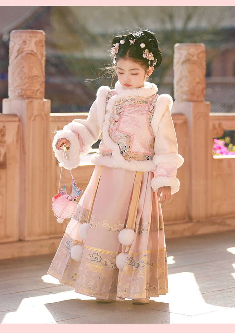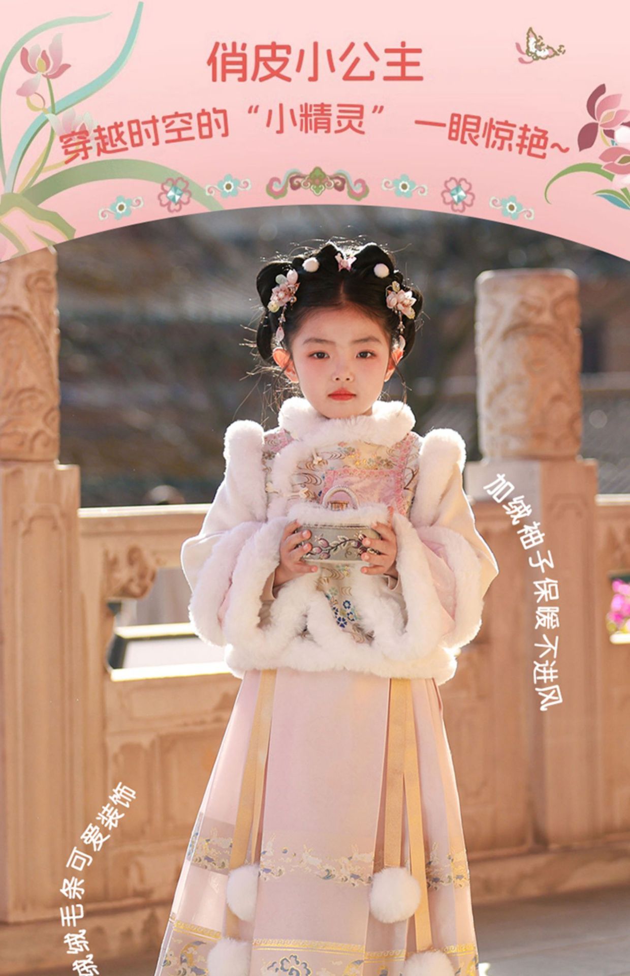 Традиционный китайский стиль Зимний Ханьфу для девочек 2025 года, осенне-зимний наряд, утолщенное национальное платье для детей, новогодний наряд