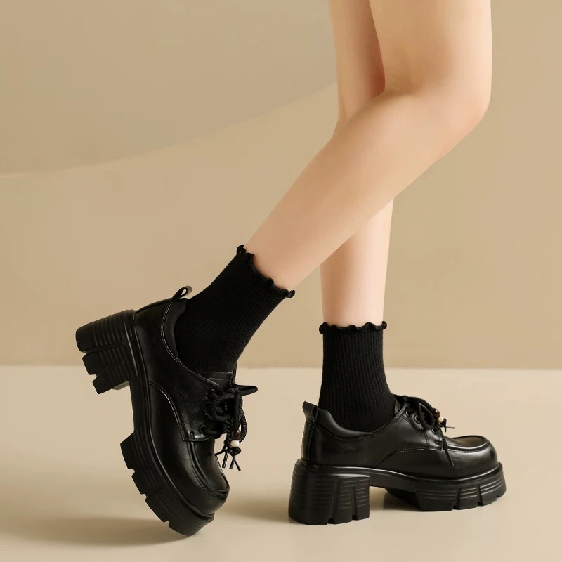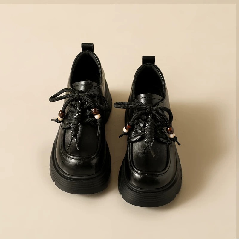 Популярные толстосоленные лоферы для женщин, 2025 осень новый стиль, черные массивные каблуки, увеличивающие рост, с флисовой подкладкой, британский стиль маленькие кожаные туфли