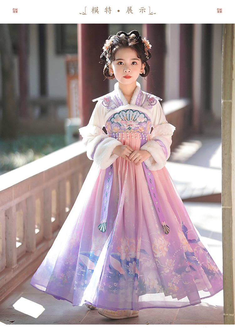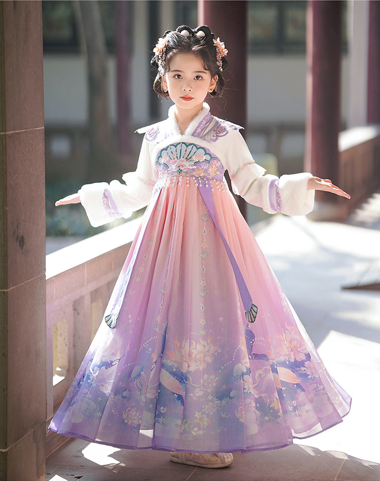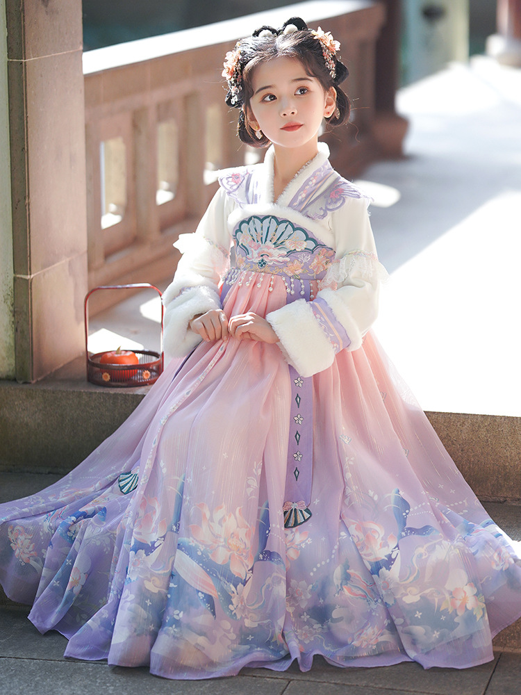 Девочки династии Хань осень и зима 2025 новый стиль платье принцессы с флисовой подкладкой детский китайский стиль танг костюм юбка