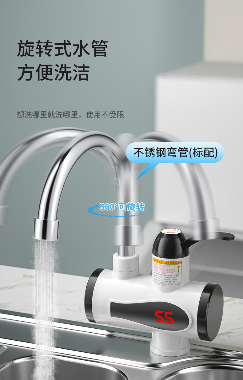 Импортный мгновенный электрический смеситель для горячей воды для домашнего использования, водонагреватель для кухни с быстрым нагревом за три секунды, для душа, купания и мытья волос