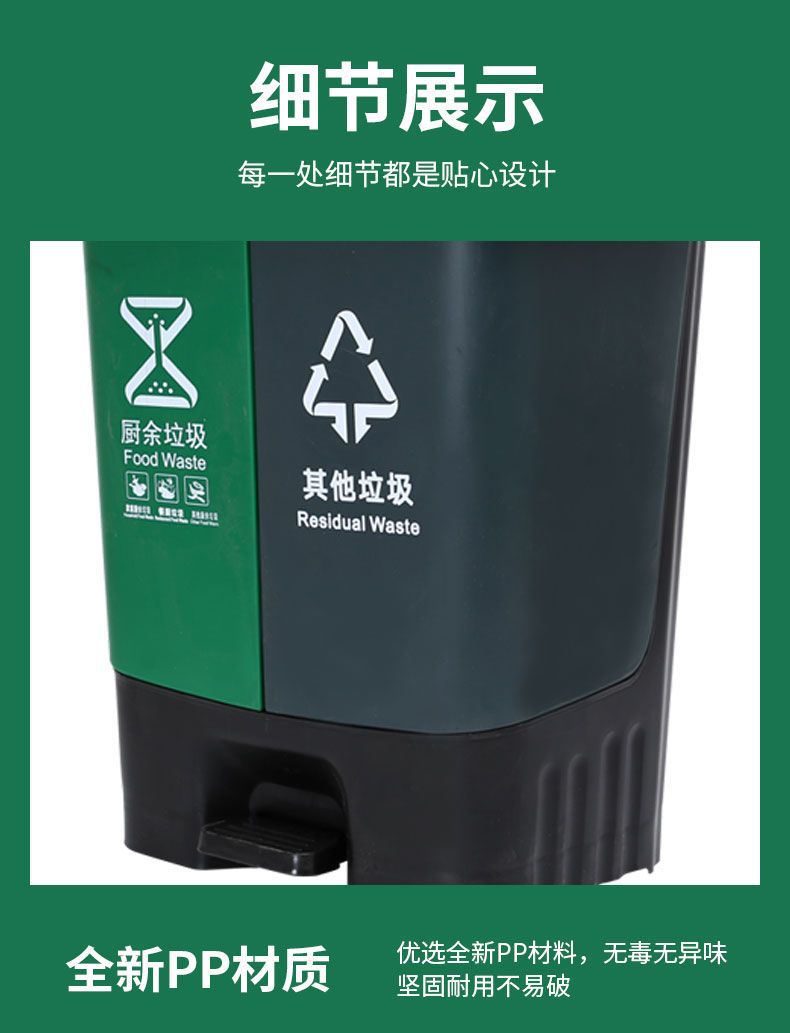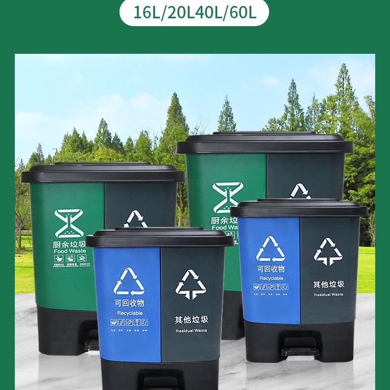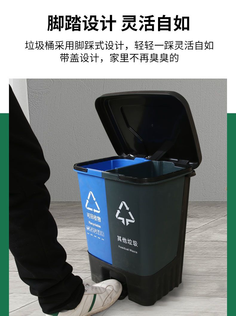 Новая модель мусорного ведра с ножным управлением, двойное ведро с крышкой, мусорное ведро для сухих и влажных отходов, прямая продажа с завода