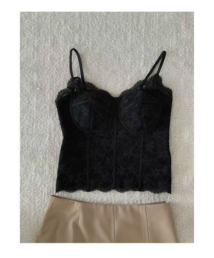 Топ без рукавов в стиле французского 6100 с встроенным бра и подушечками для груди, интегрированная красивая спина, облегающий фасон