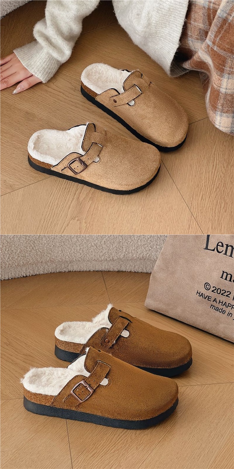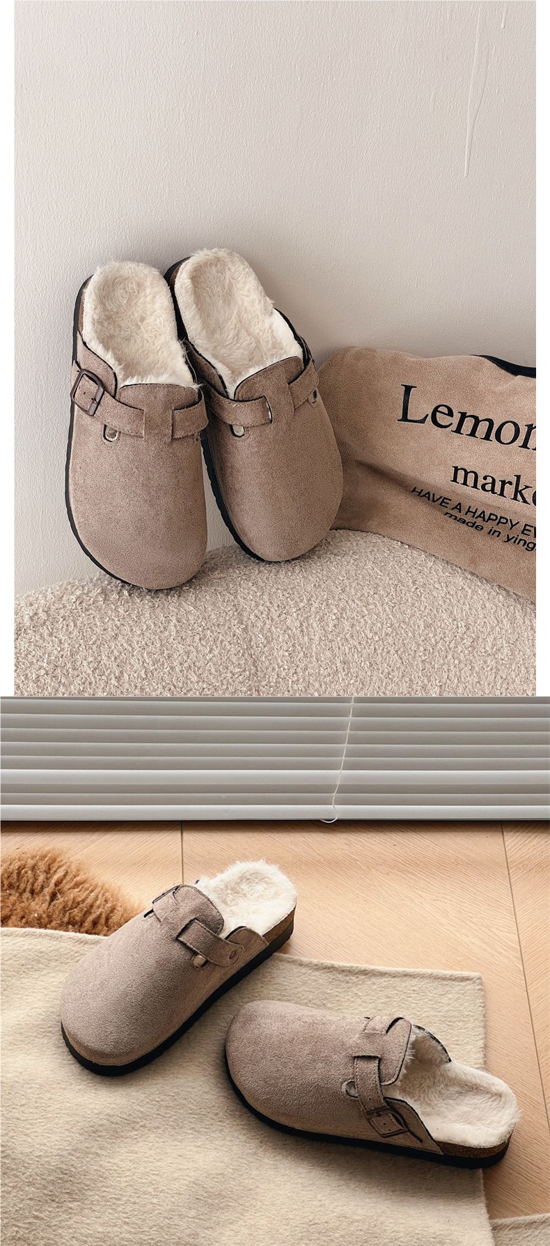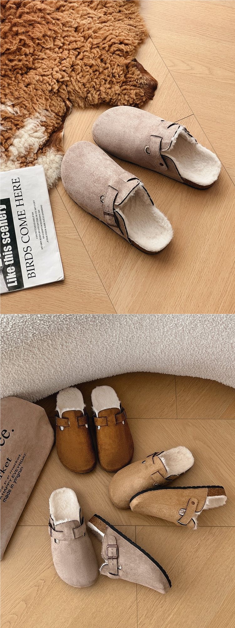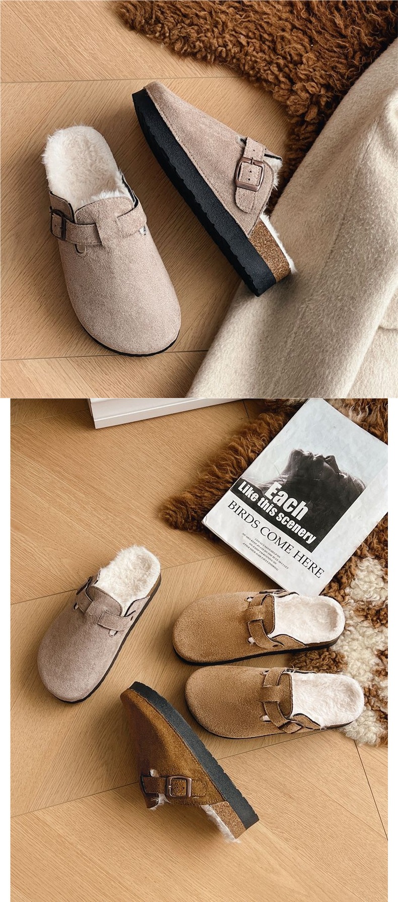 2025 новые толстосоленные шлепанцы Birkenstock высотой 4.5 см с флисовой подкладкой для осени и зимы