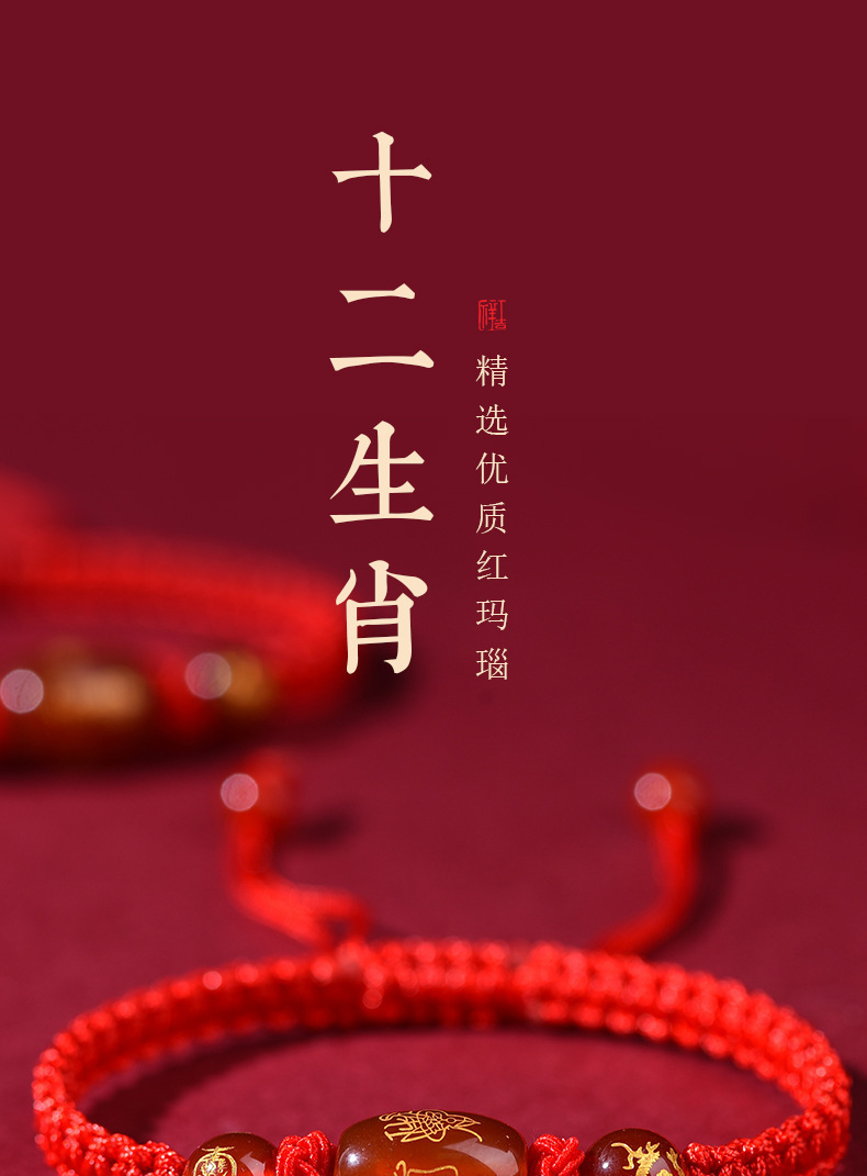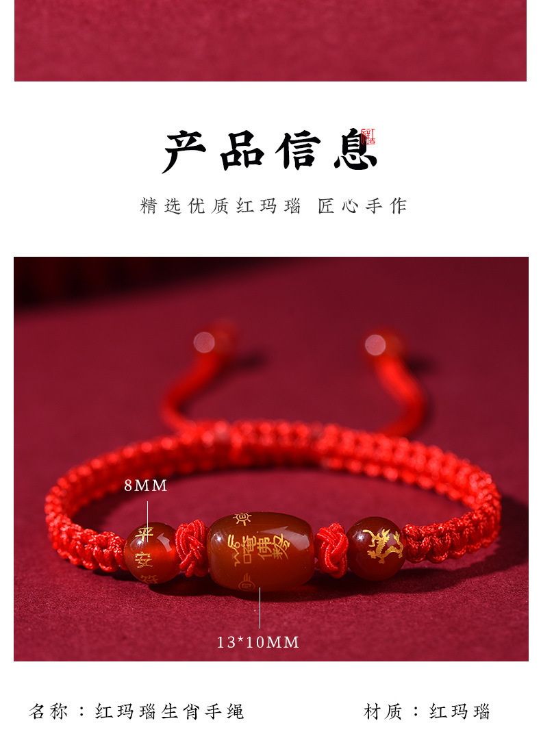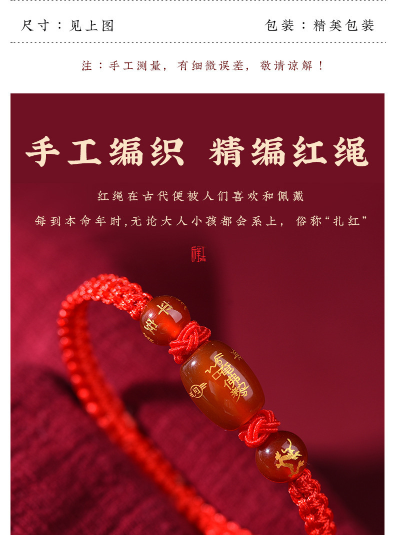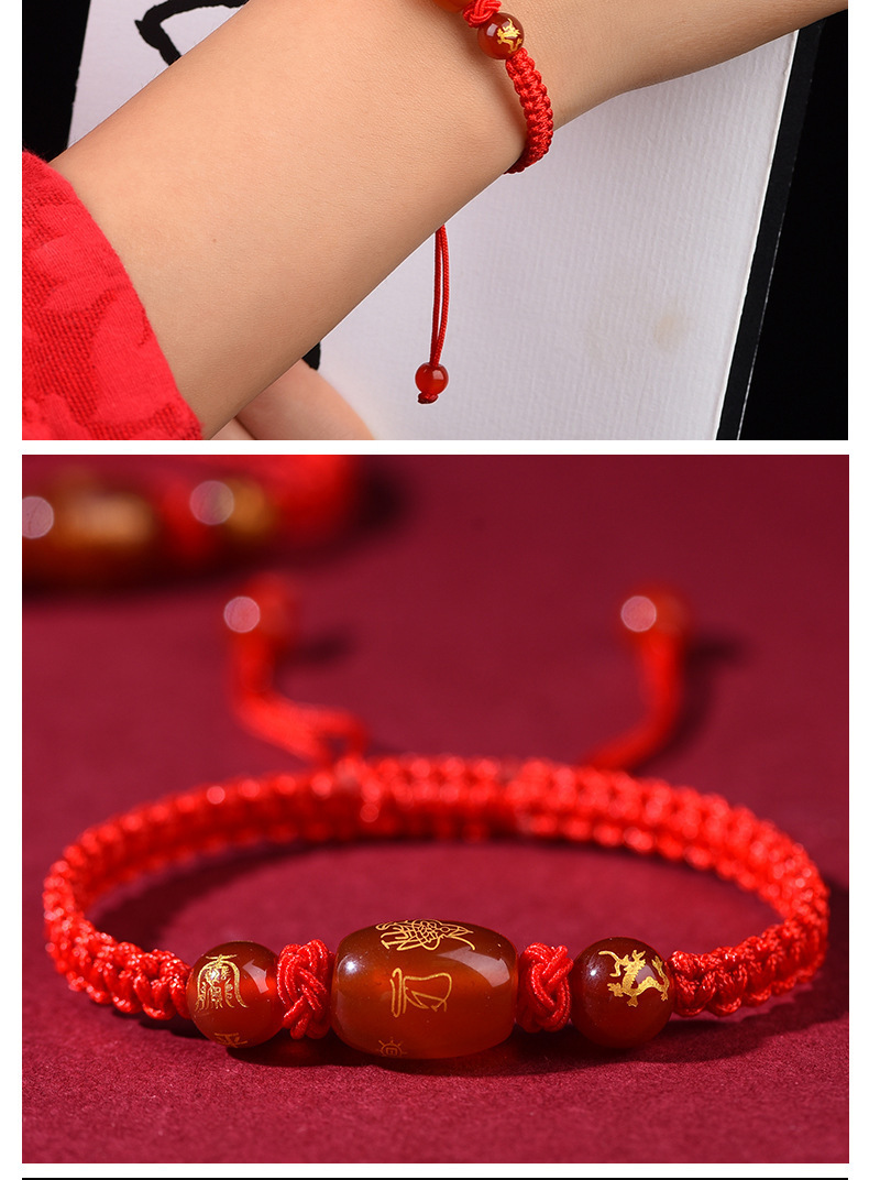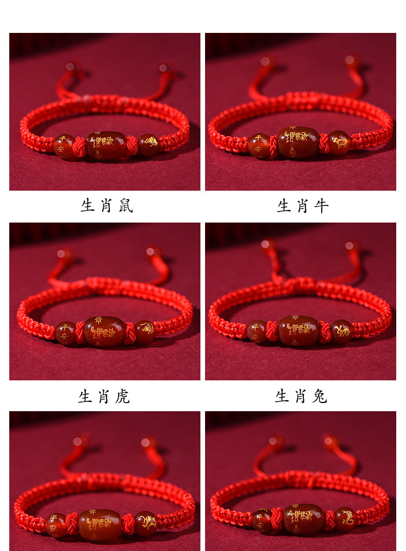 Браслет года дракона Тай Суй, агатовый браслет с красной веревкой, плетеный браслет двенадцати зодиакальных покровителей, оптовая продажа