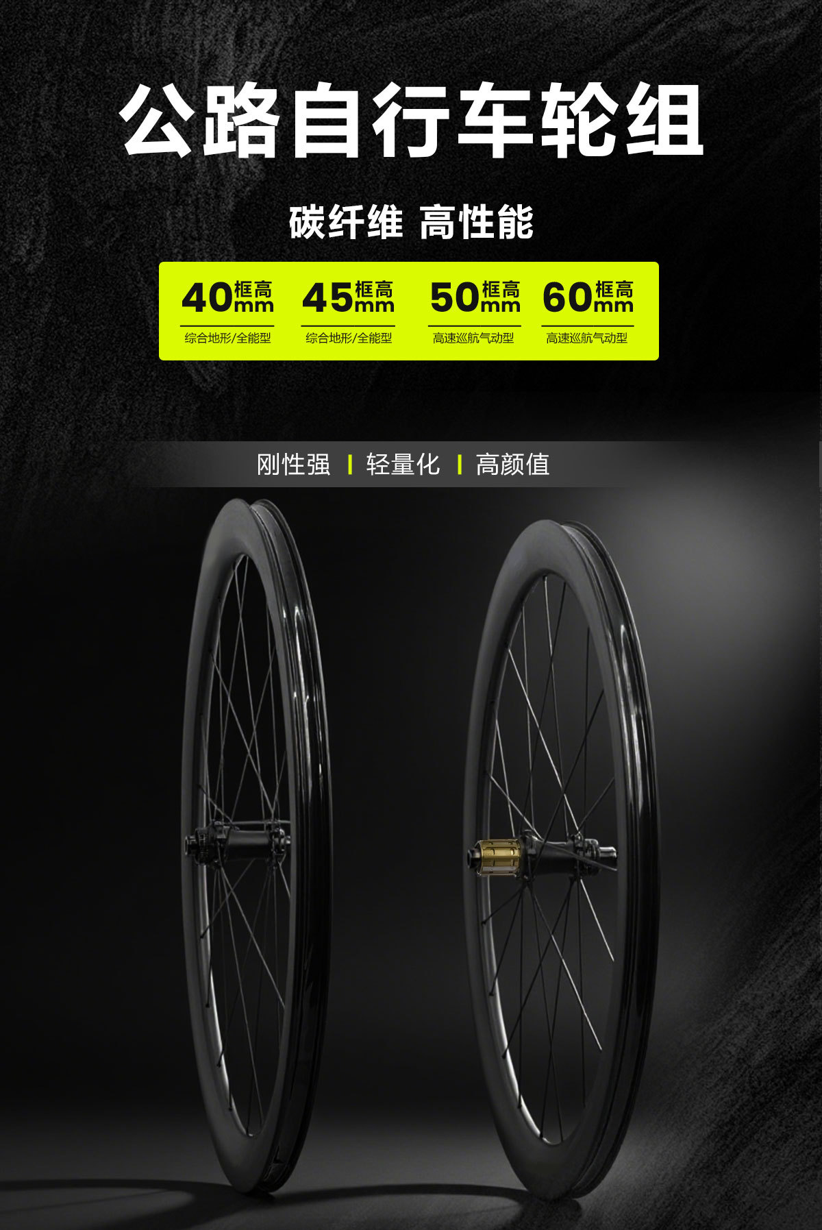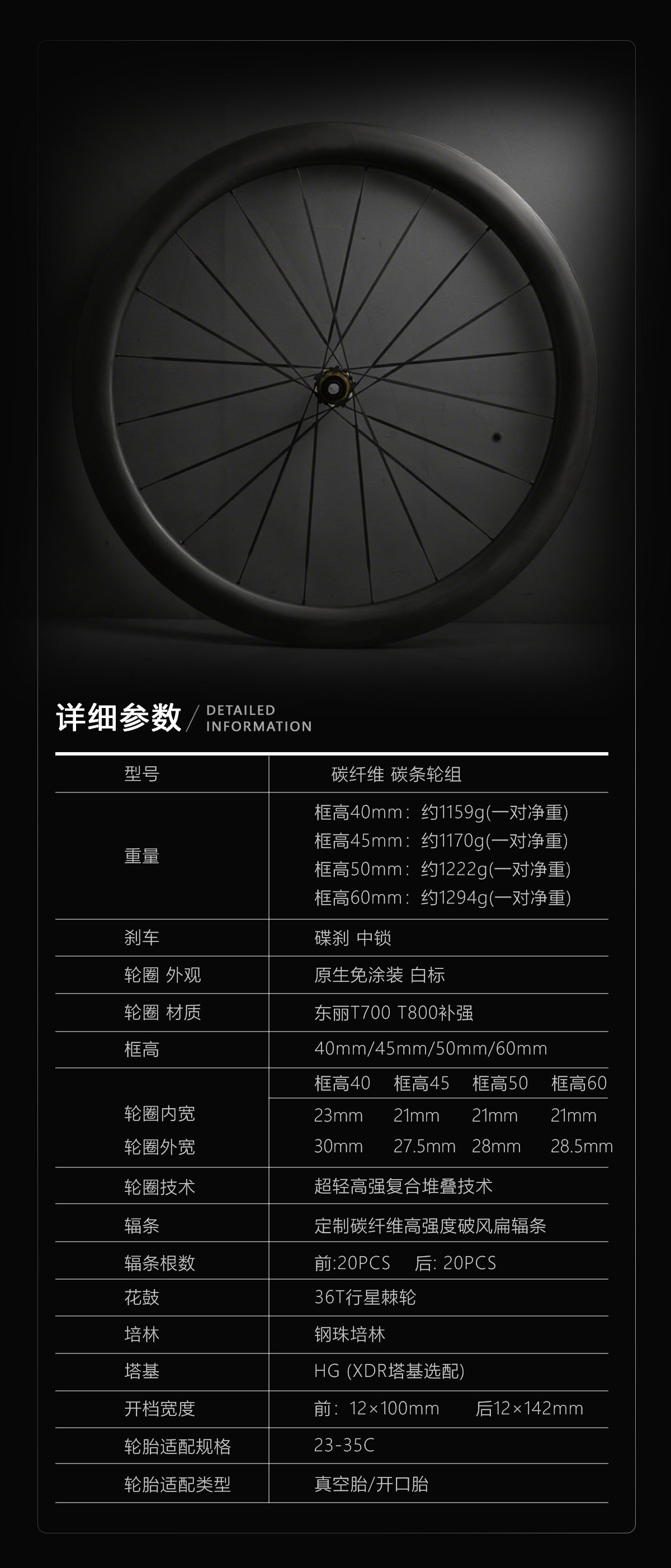 这个轮组我们通过了1年多的研发,辐条通过3种不同的加工方式尝试,保证数据优秀同时稳定的前提,不断改进生产工艺,获取了更优的效率以便达成客户需求,并且此款辐条通过1年多的市场检验,达成客户一致好评,车圈也是经历了不计其数的优化在保证钢性数据及稳定数据的前提下适当的降低重量大量车圈的市场实践,稳定性得到广大客户的认可,花鼓方面历经多轮加工筛选和市场验证,出类拔萃的选择此款更具综合优势的花鼓为轮组部件,整体轮组通过1年的研发和市场检验,或者不错的口碑,现对OEM和小批量客户开放,以便让大家对碳纤维辐条轮组有更深度的认知。