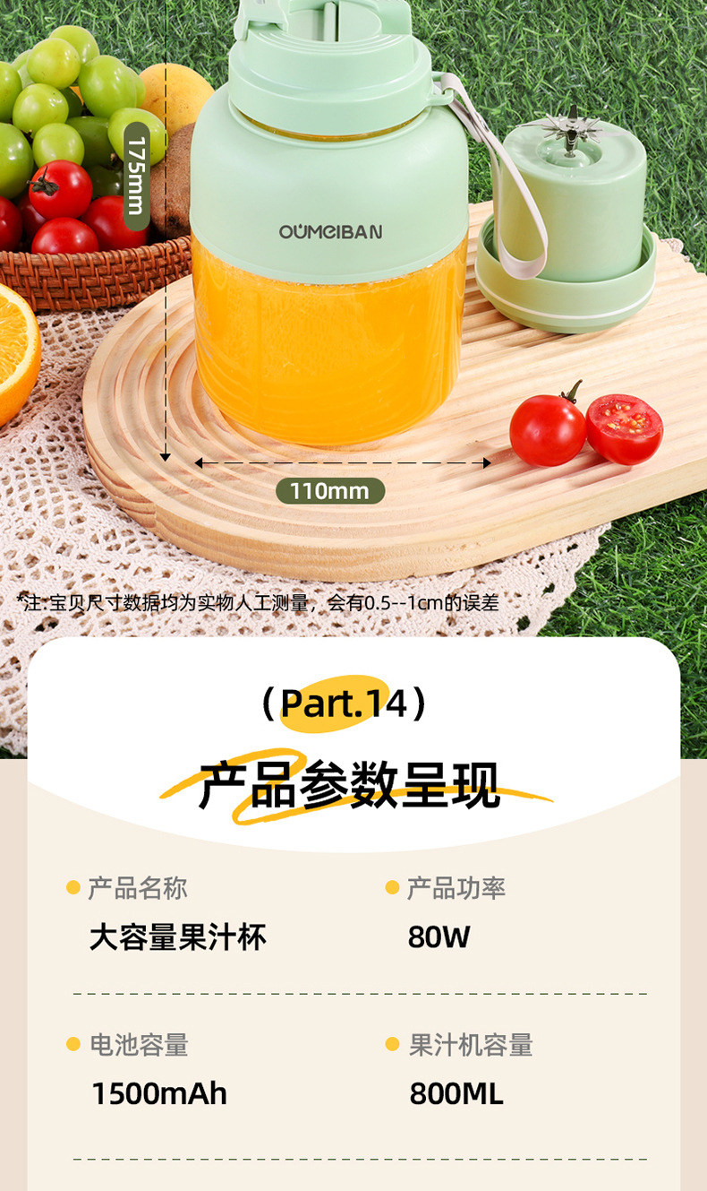 Портативная мини-блендер для дома, многофункциональный, беспроводной, большой объем