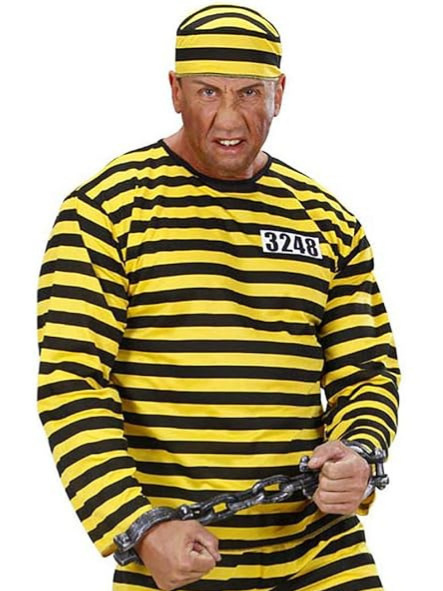 [Трехкомпонентный набор] Костюм для Хэллоуина в тюремном стиле, полосатая футболка и брюки для мужчин и женщин, свободный стиль с шляпой