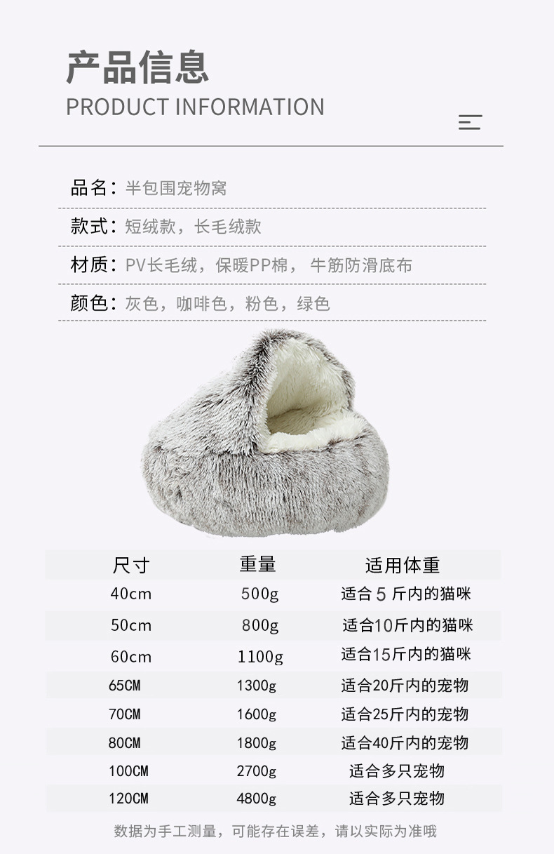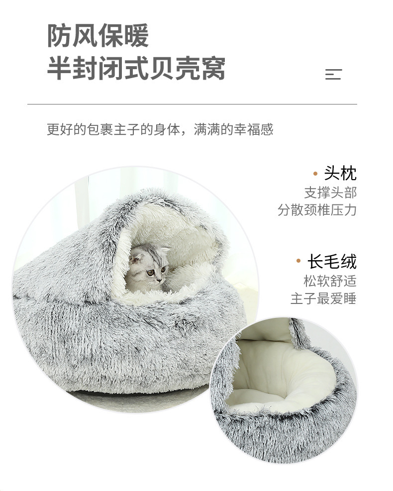 Зимнее теплое полузакрытое гнездо для кошек, лежанка для собак, полузакрытая кошачья кровать