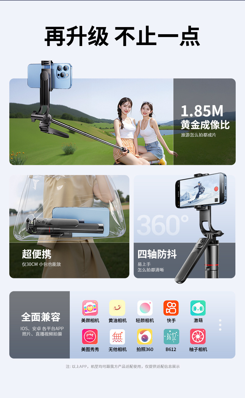 ![]() | 1.80m extended handheld gimbal stable duplex tripod-bluetooth remote control-with quarter | ¥15.0 / ≈ 181 ₽ | 50000 | 6024123264317 | |