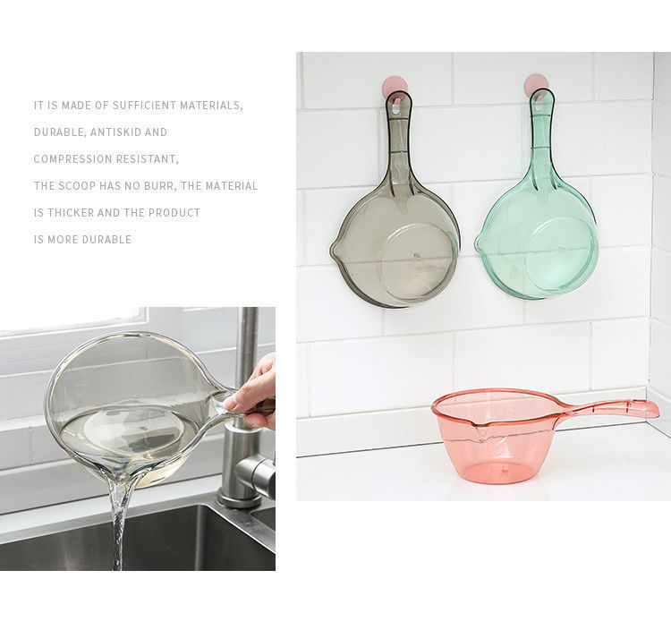 Прозрачная пластиковая водяная черпак от производителя, устойчивый к падениям, утолщенный и углубленный, длинная ручка для купания, кухни, оптовая продажа большого водяного черпака