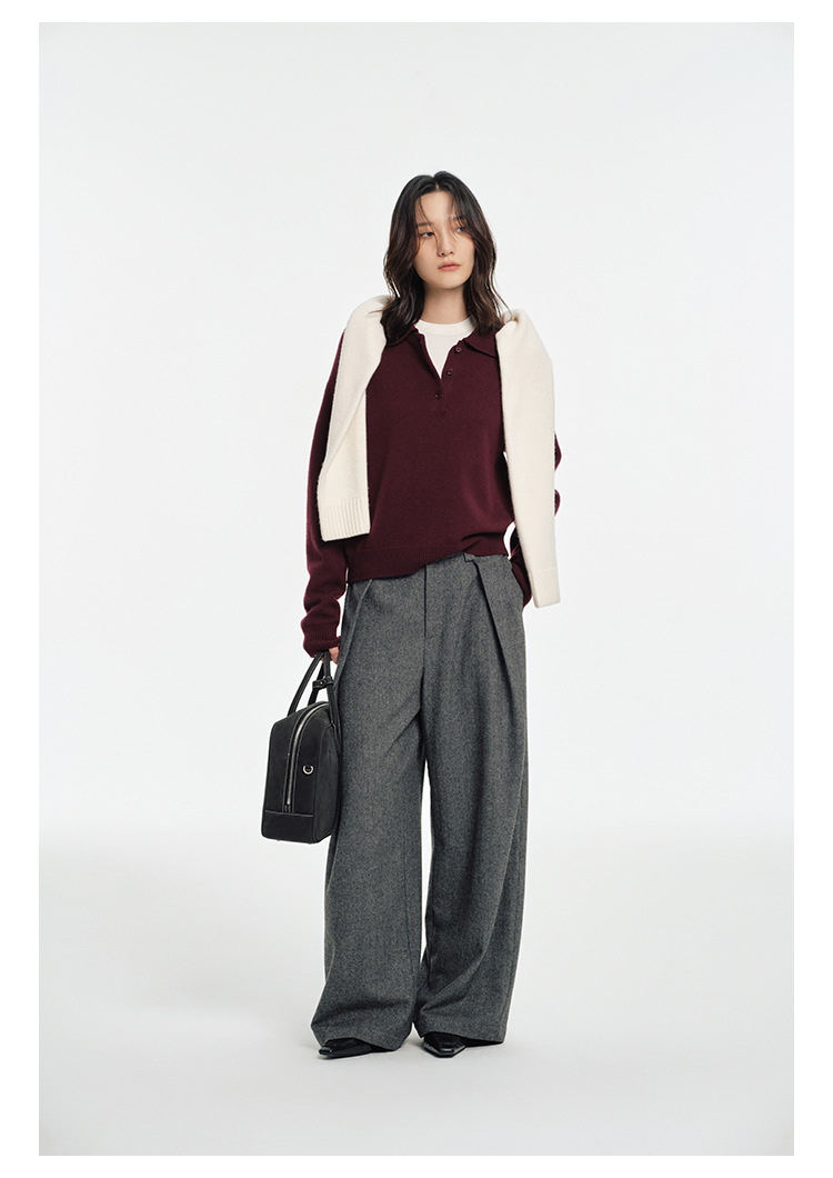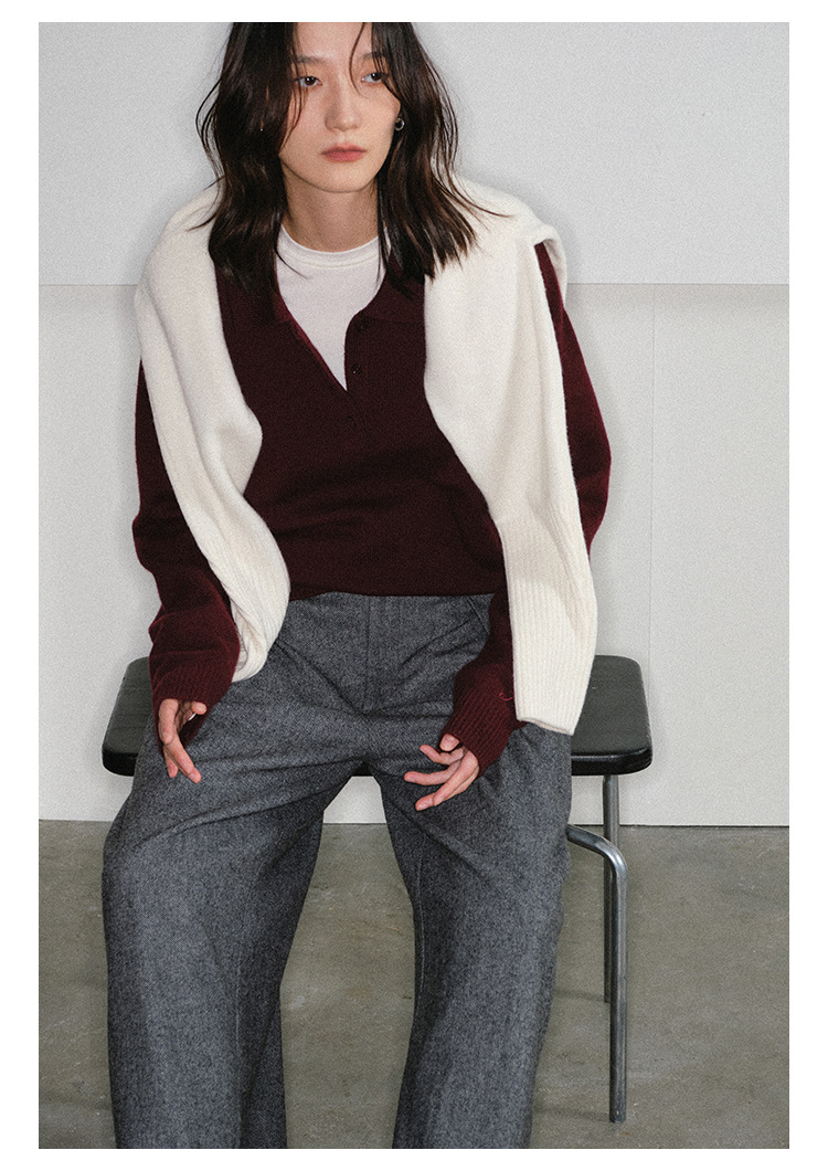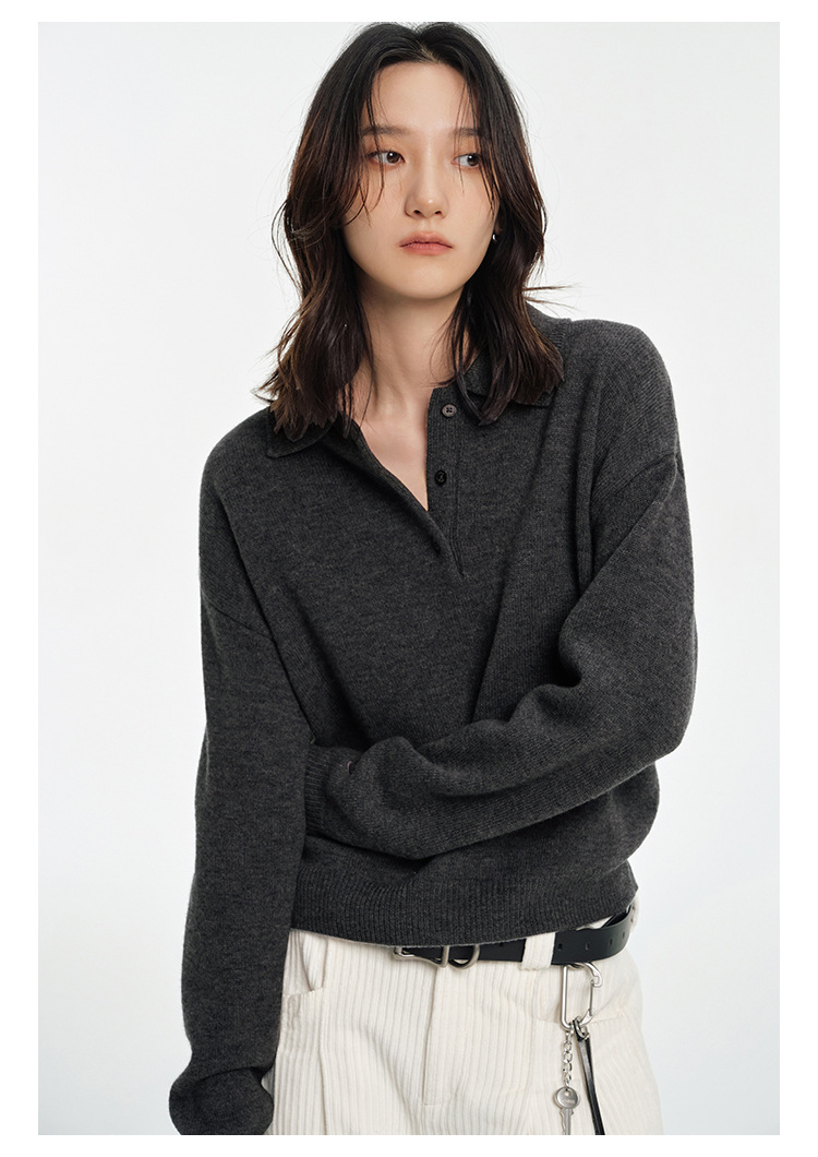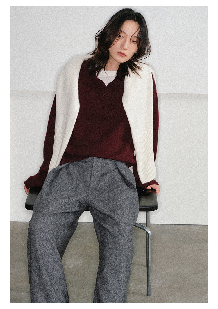 Слоистый винтажный универсальный пуловер с воротником-поло