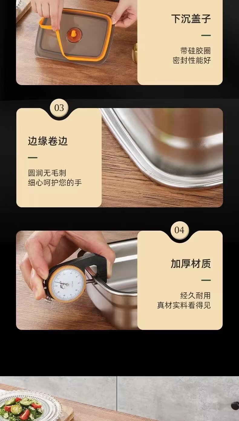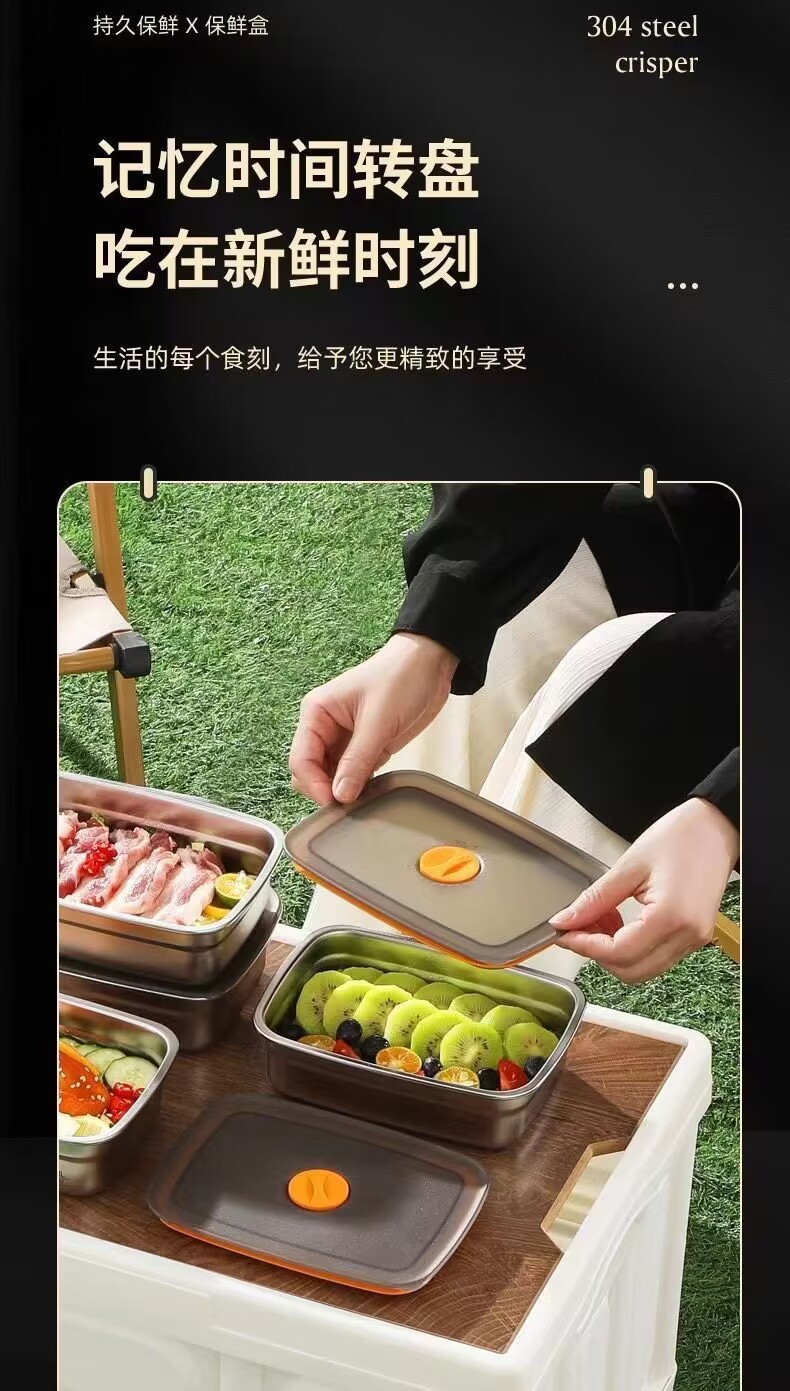 Контейнер для хранения из нержавеющей стали для холодильника, портативный прямоугольный герметичный контейнер для хранения