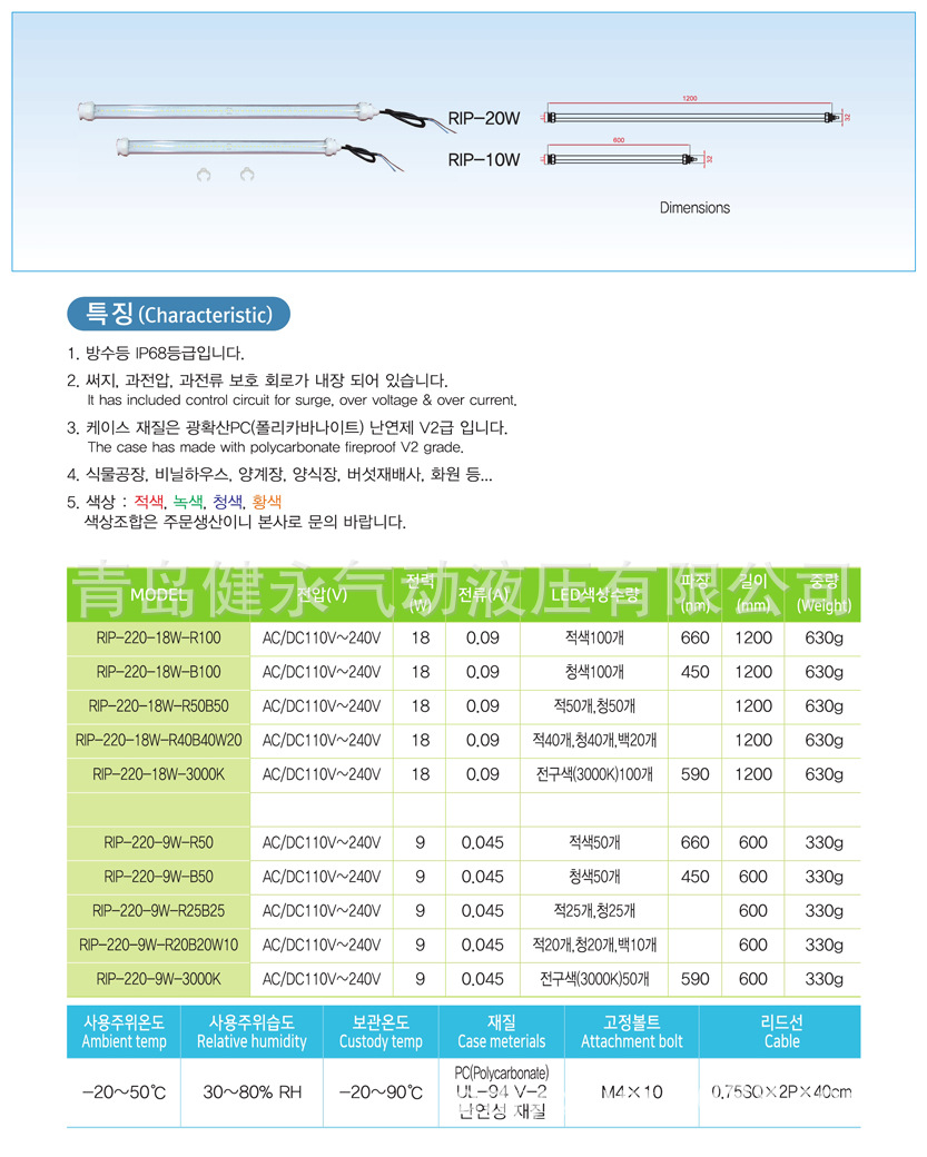 Корейская водонепроницаемая LED-лампа серии Rip с LED-лампочками