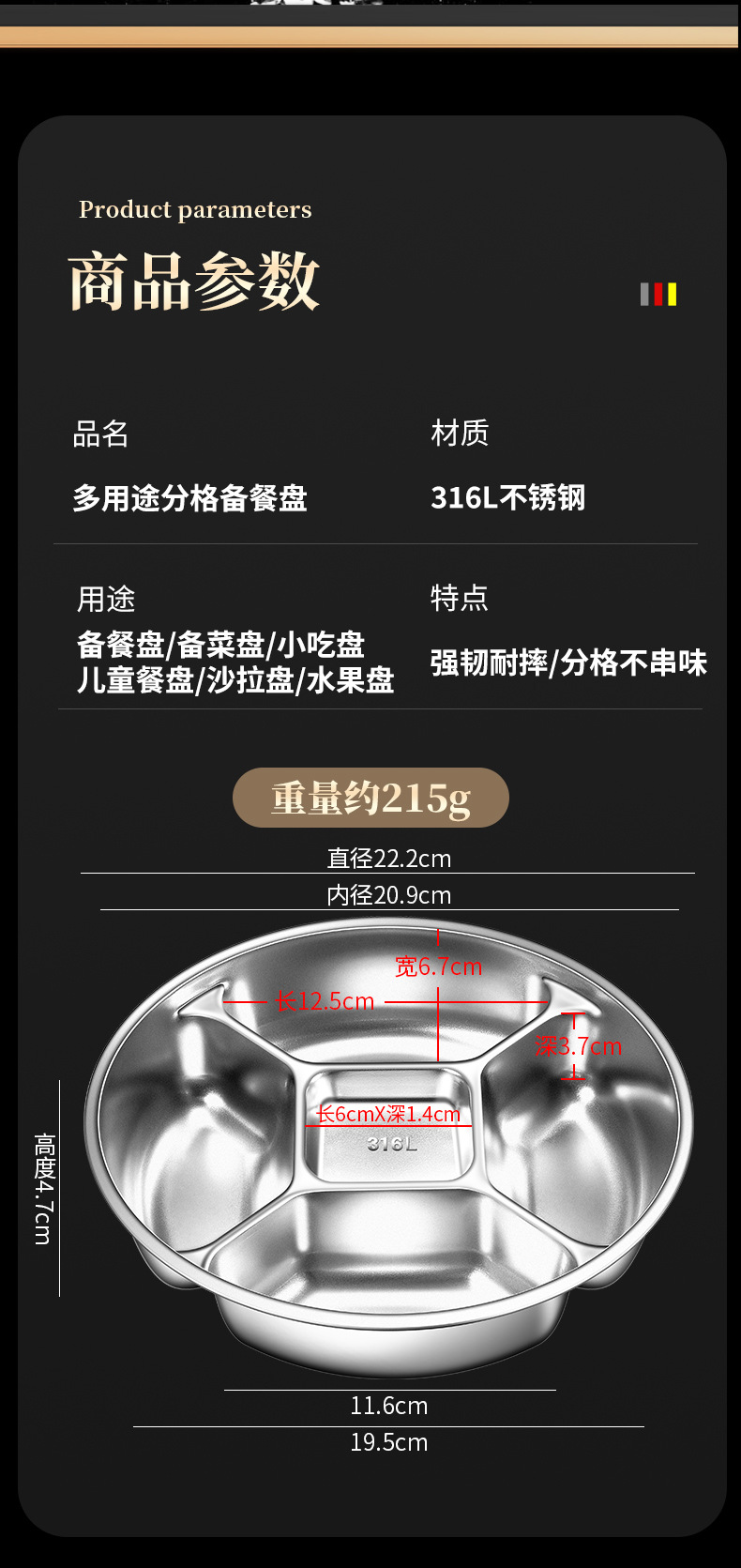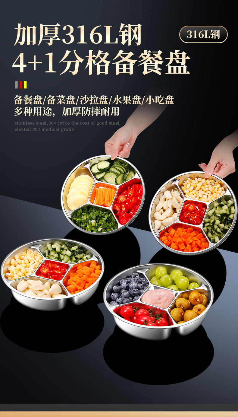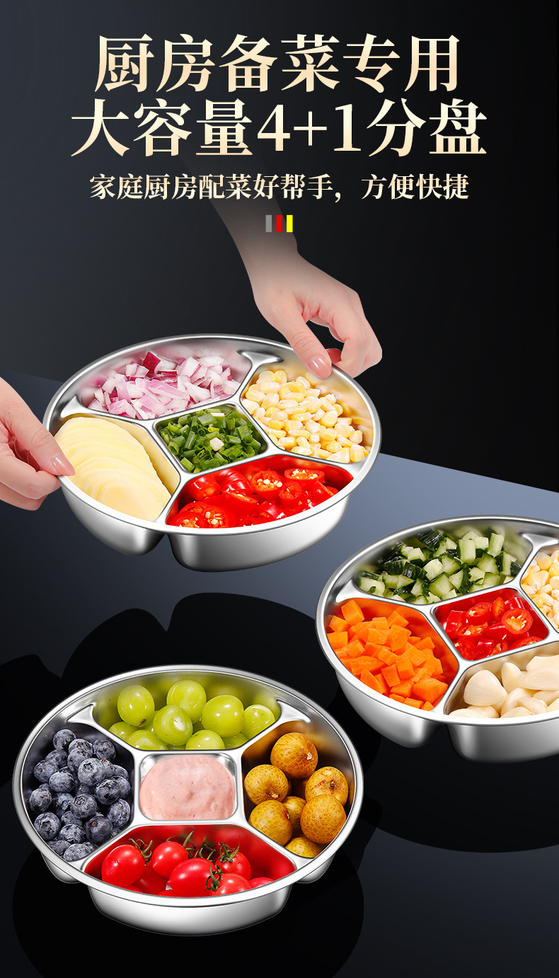 Многофункциональный поднос для подготовки из нержавеющей стали 304 с пятью отделениями для хранения лука, имбиря, чеснока и мелких приправ