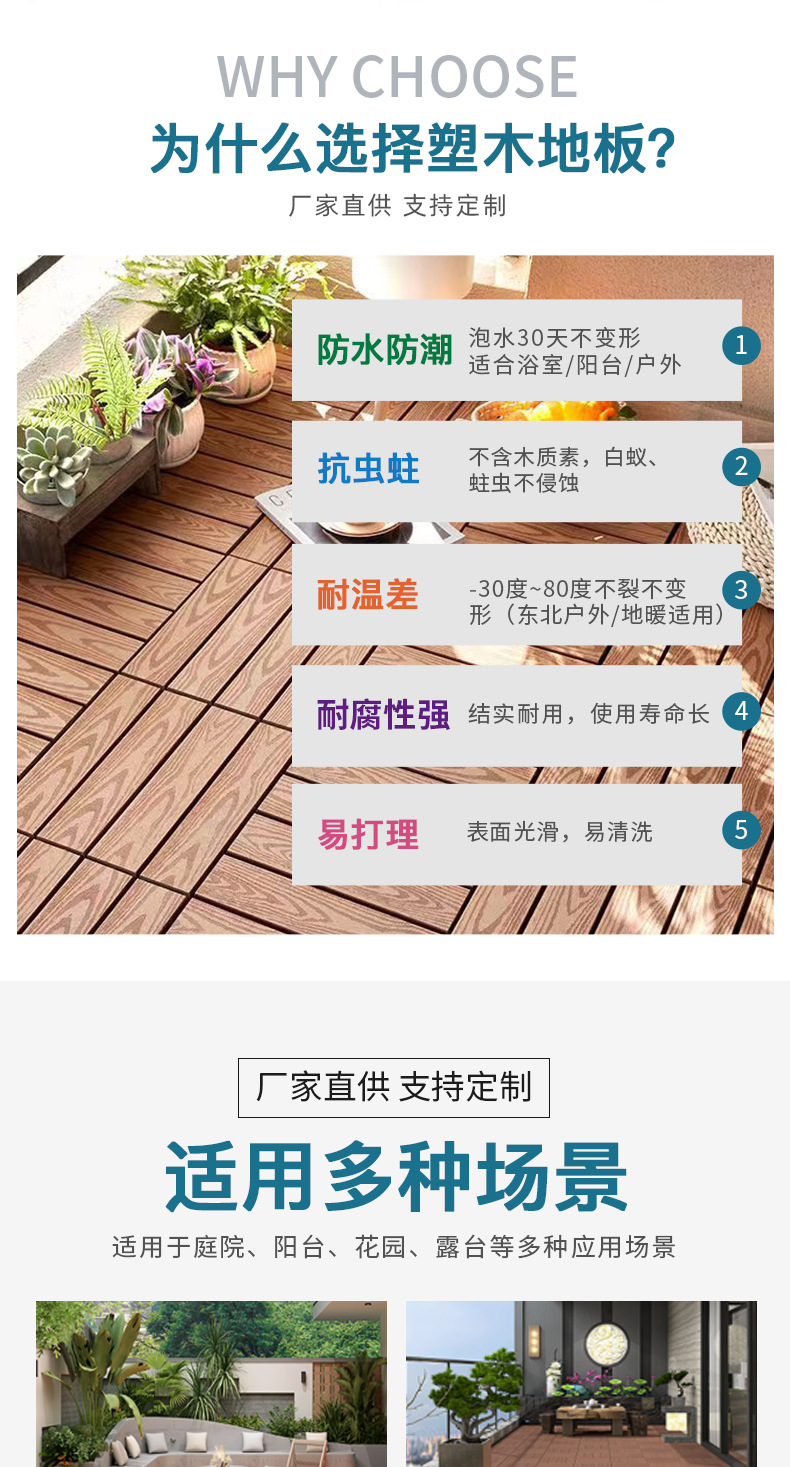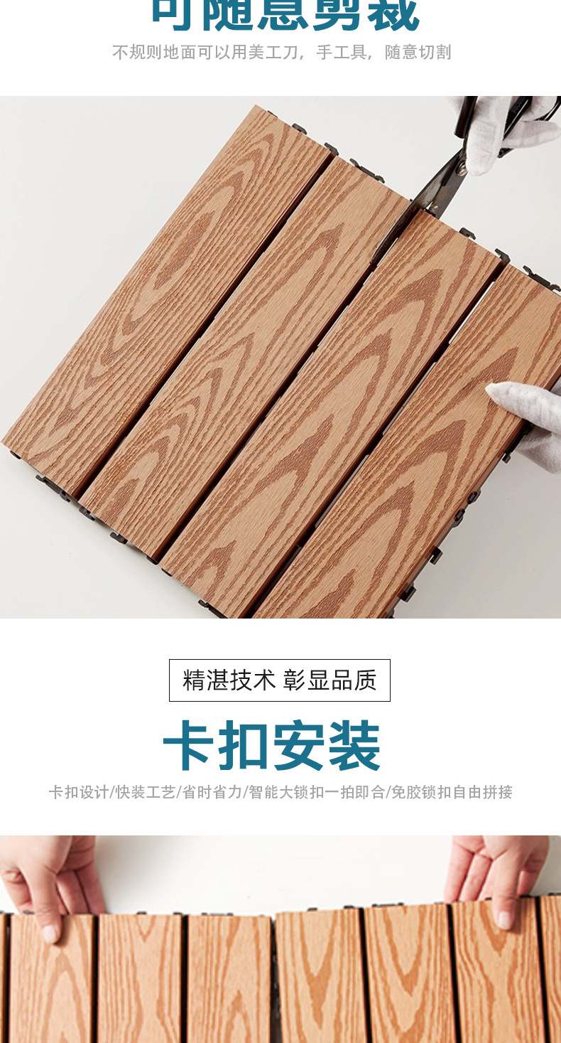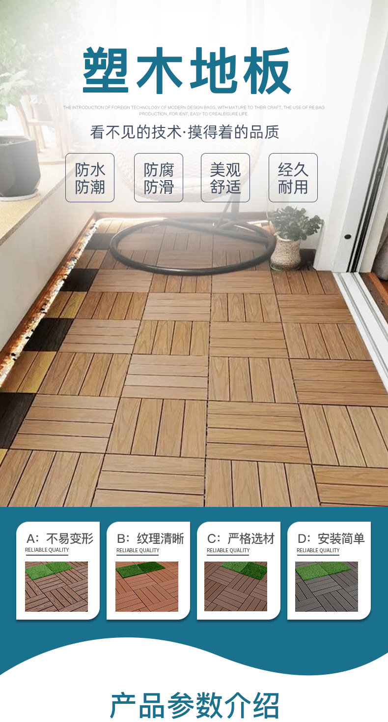 Уличный пластиковый деревянный пол для сада и балкона, водонепроницаемый, антикоррозийный, самоукладывающаяся терраса, соединение в замок