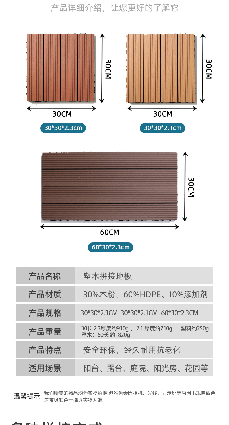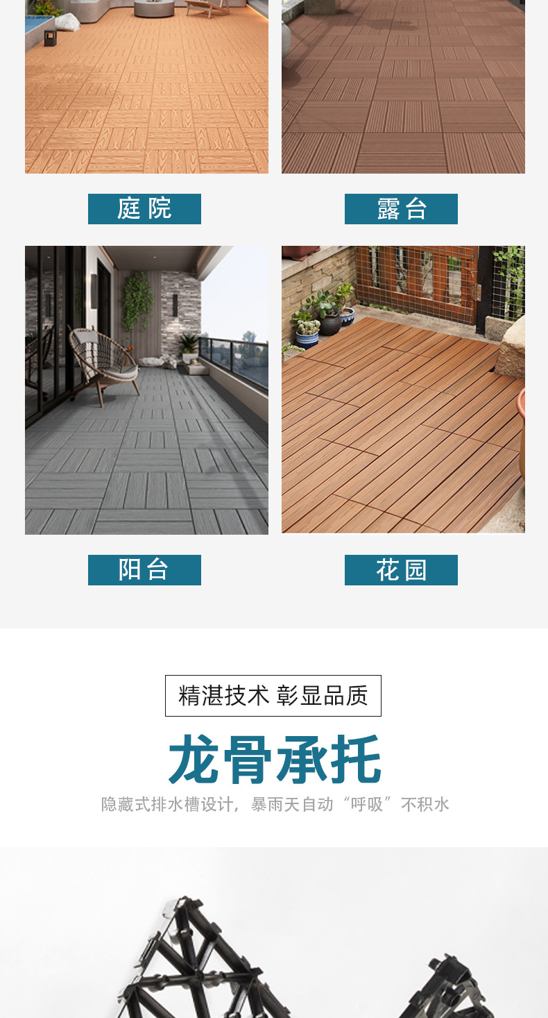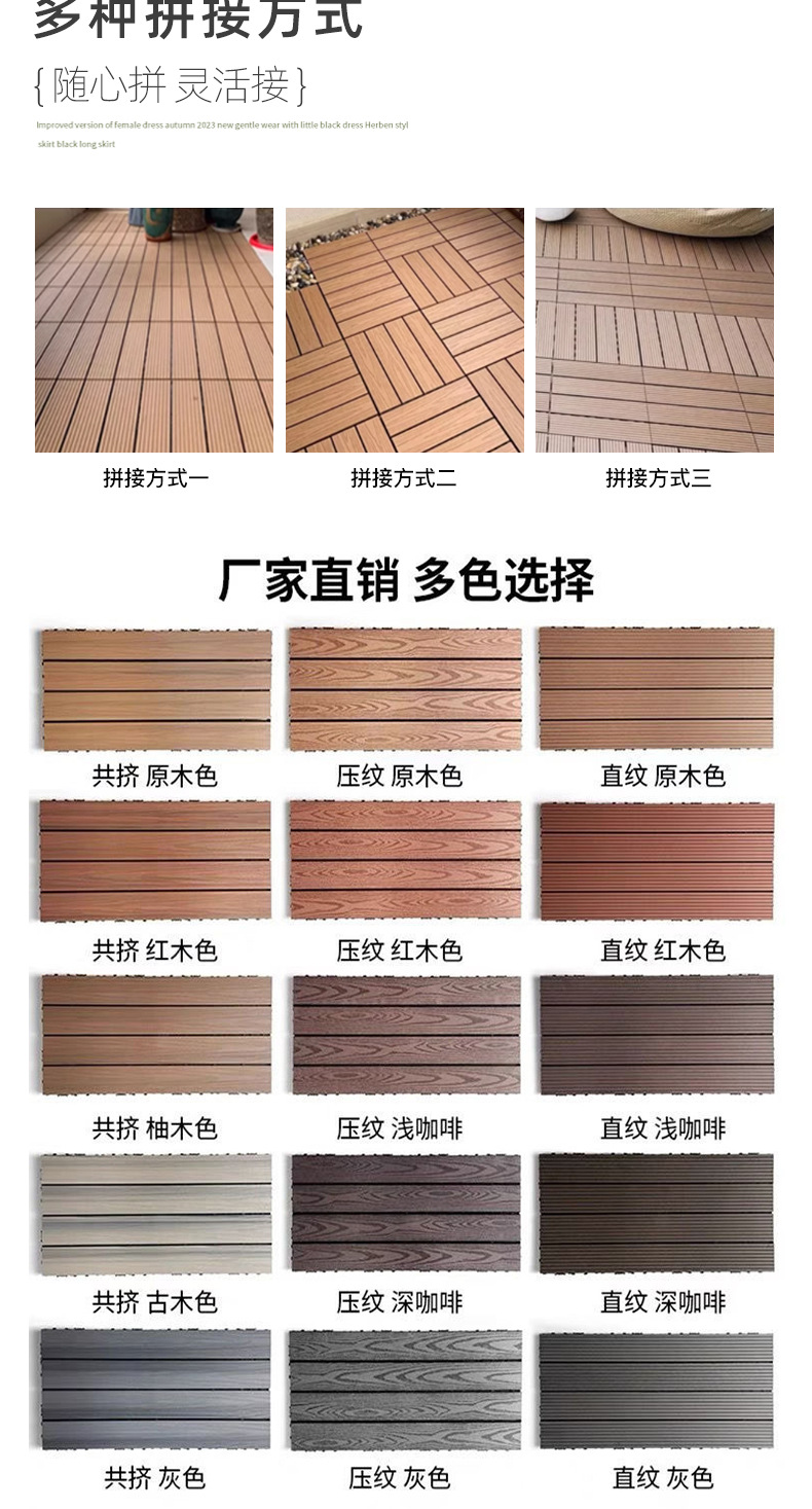 Уличный пластиковый деревянный пол для сада и балкона, водонепроницаемый, антикоррозийный, самоукладывающаяся терраса, соединение в замок