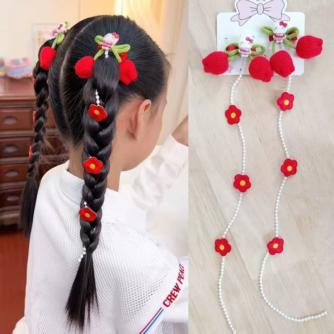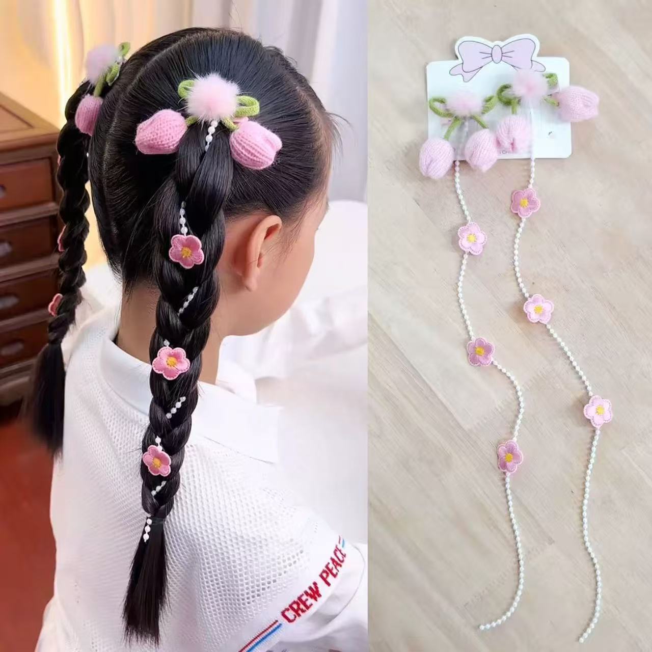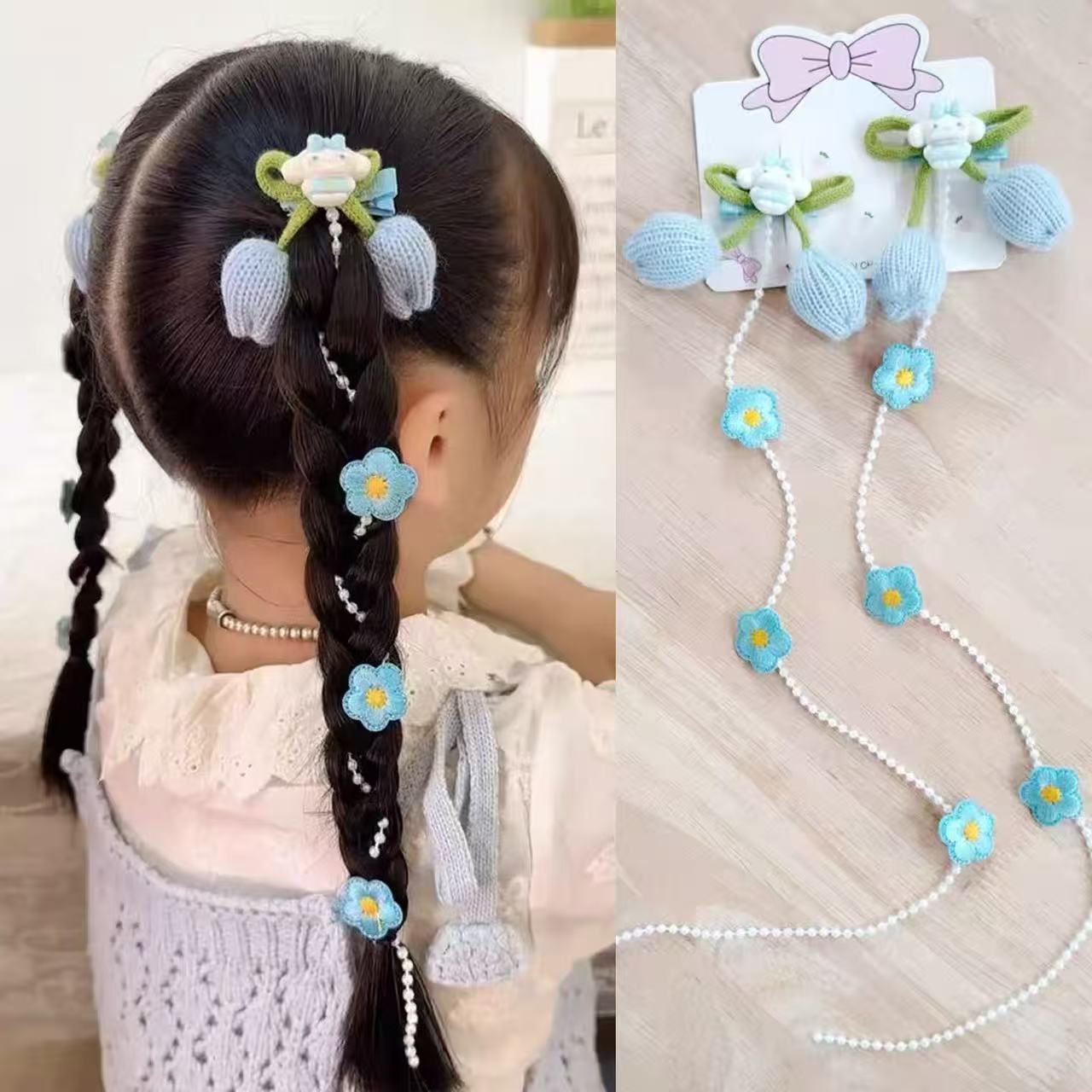 Мультяшная заколка для волос с жемчужными кисточками для девочек, милый тиара для принцесс, цветочная заколка для волос