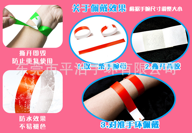 Готовые одноразовые браслеты из синтетического материала, трансграничные поставки, билеты для парка аттракционов, водонепроницаемые бумажные браслеты