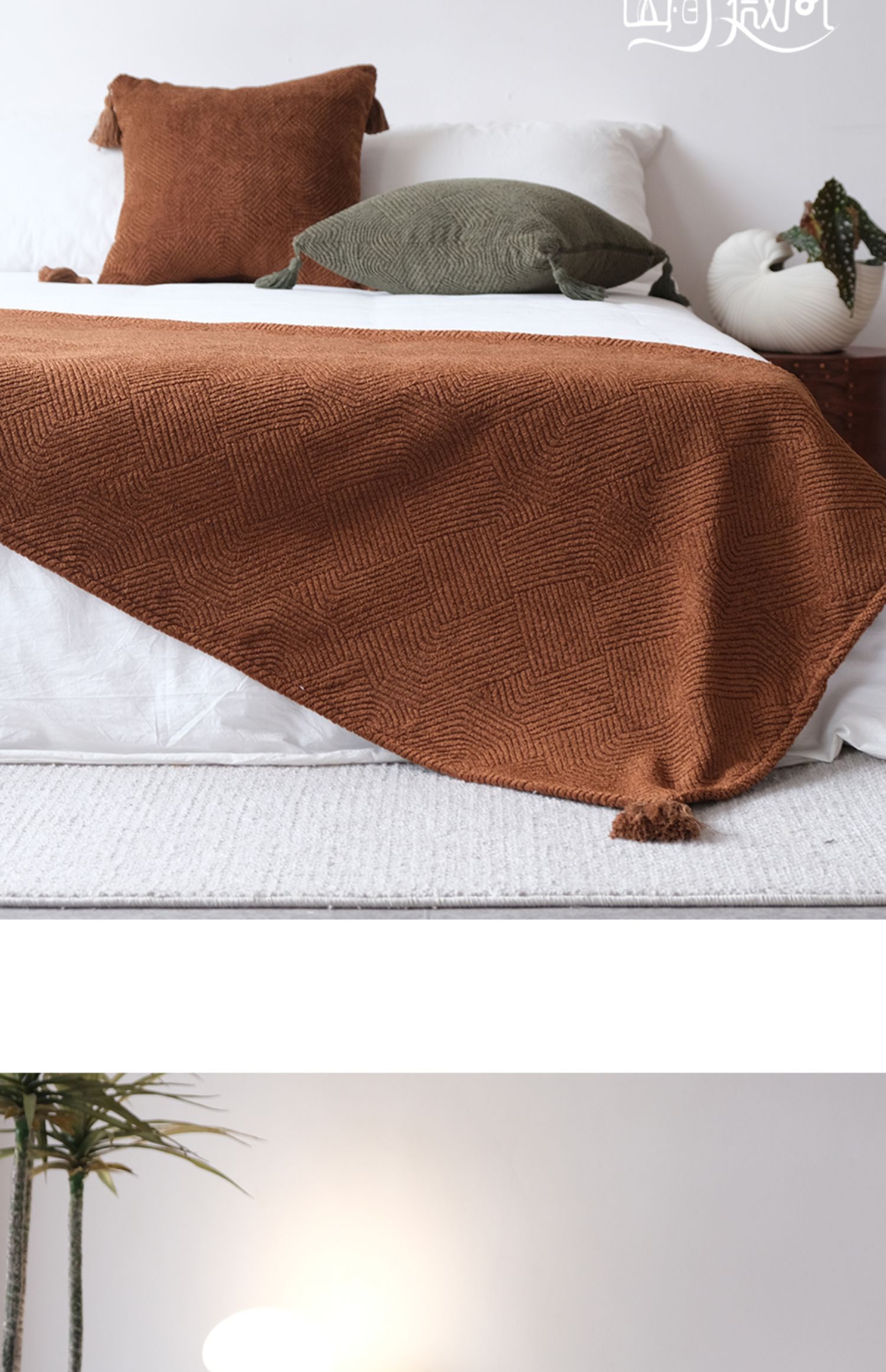 Плед в стиле Wabi-Sabi, для гостиниц, коричневый цвет