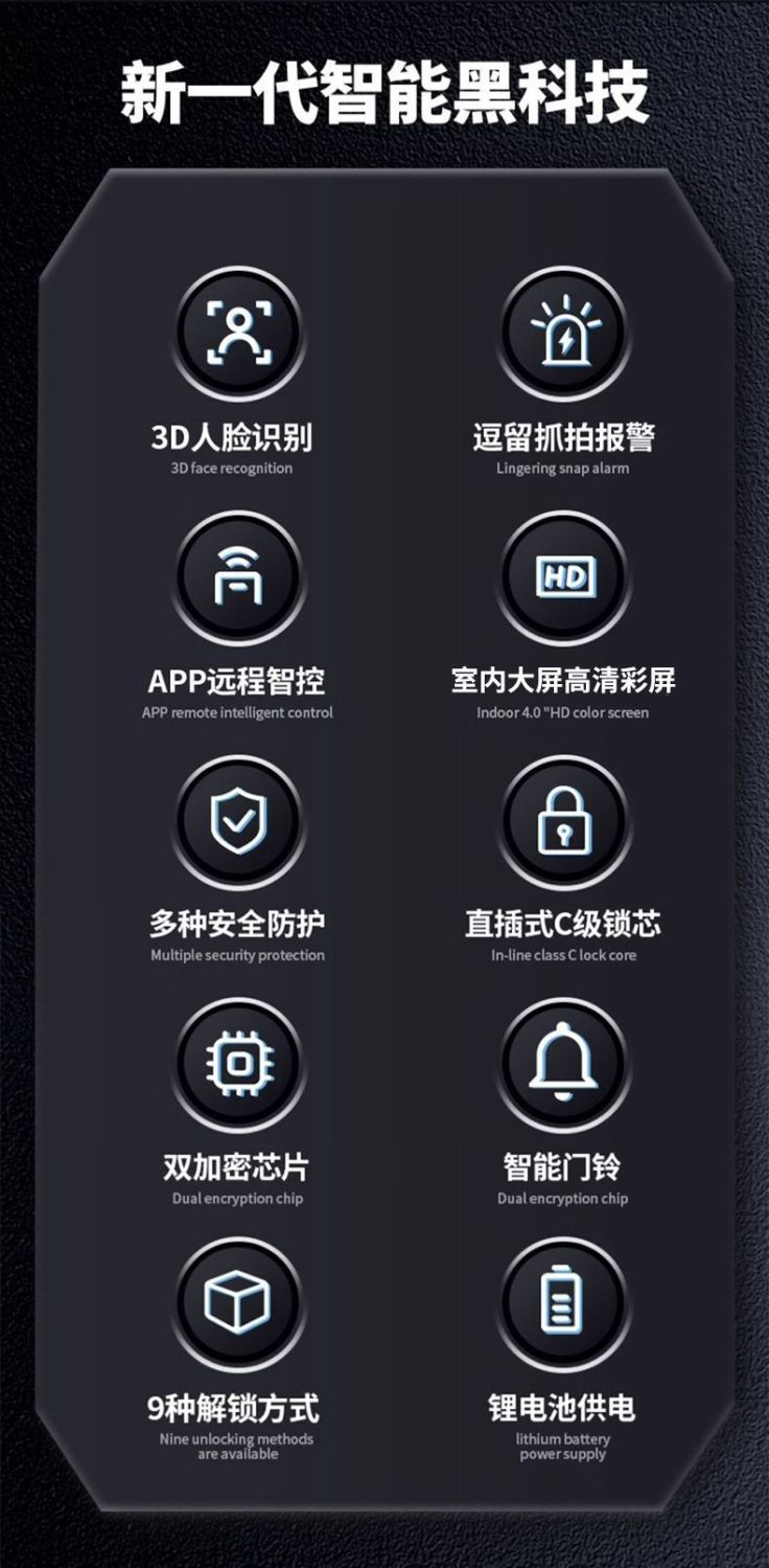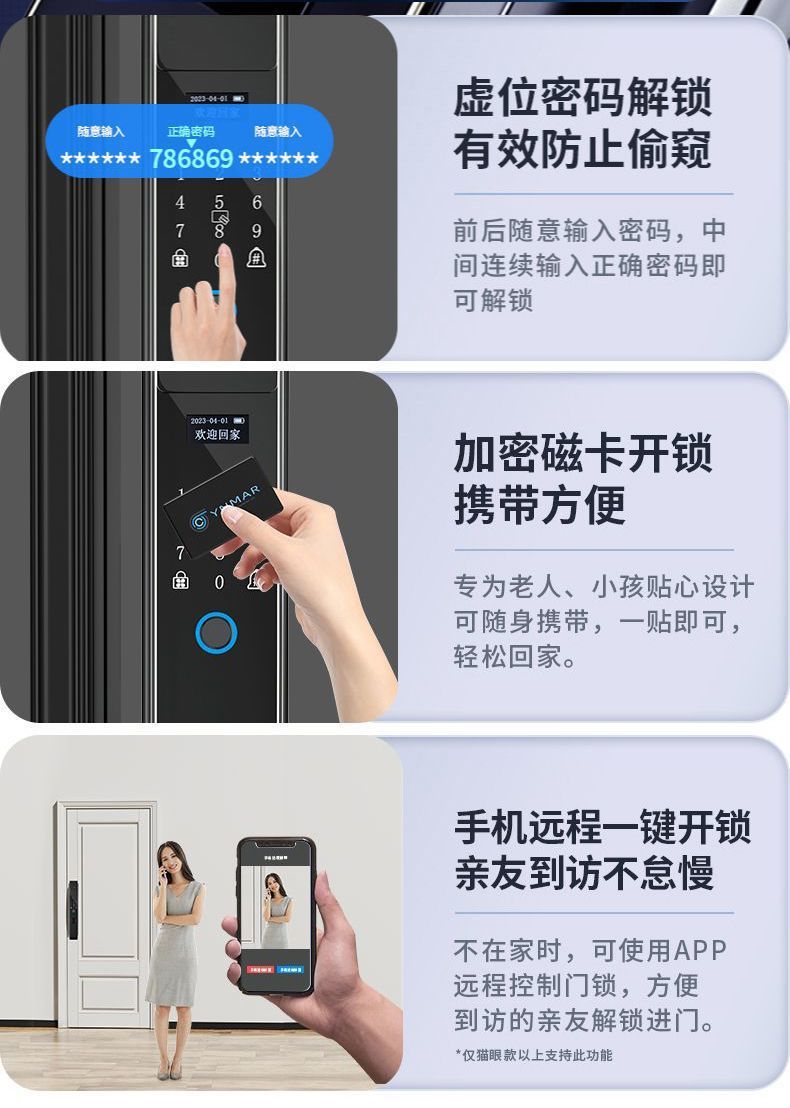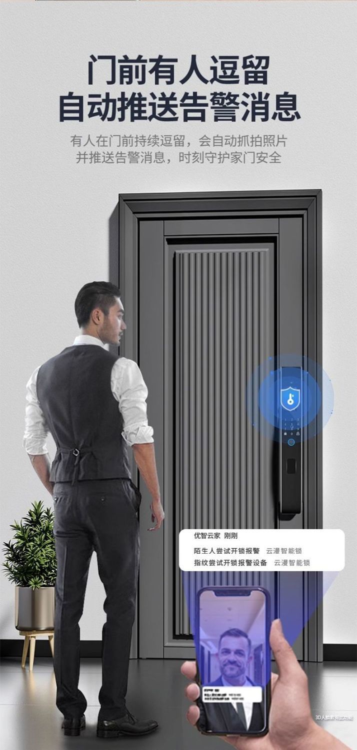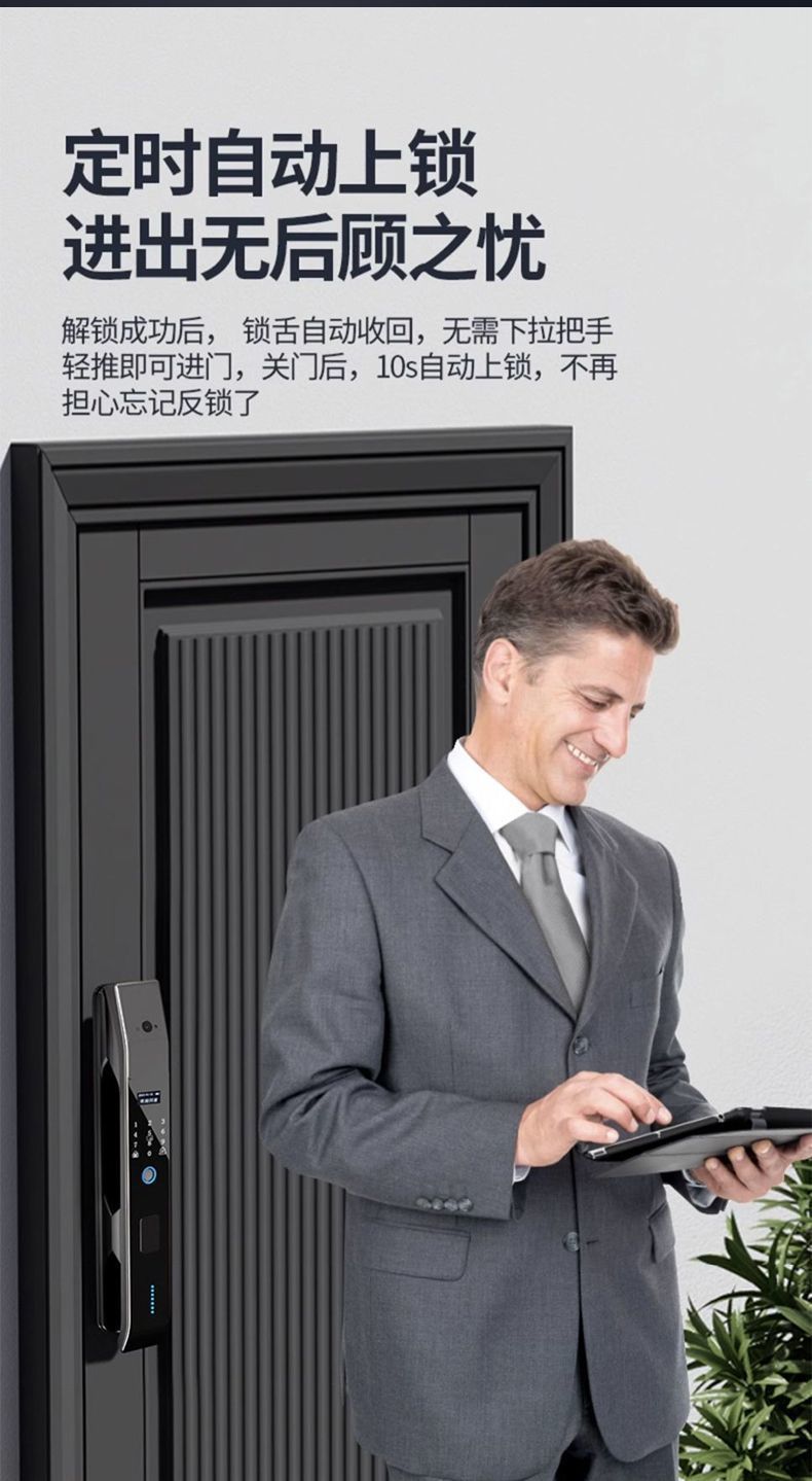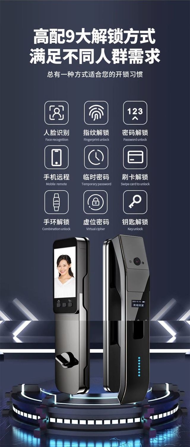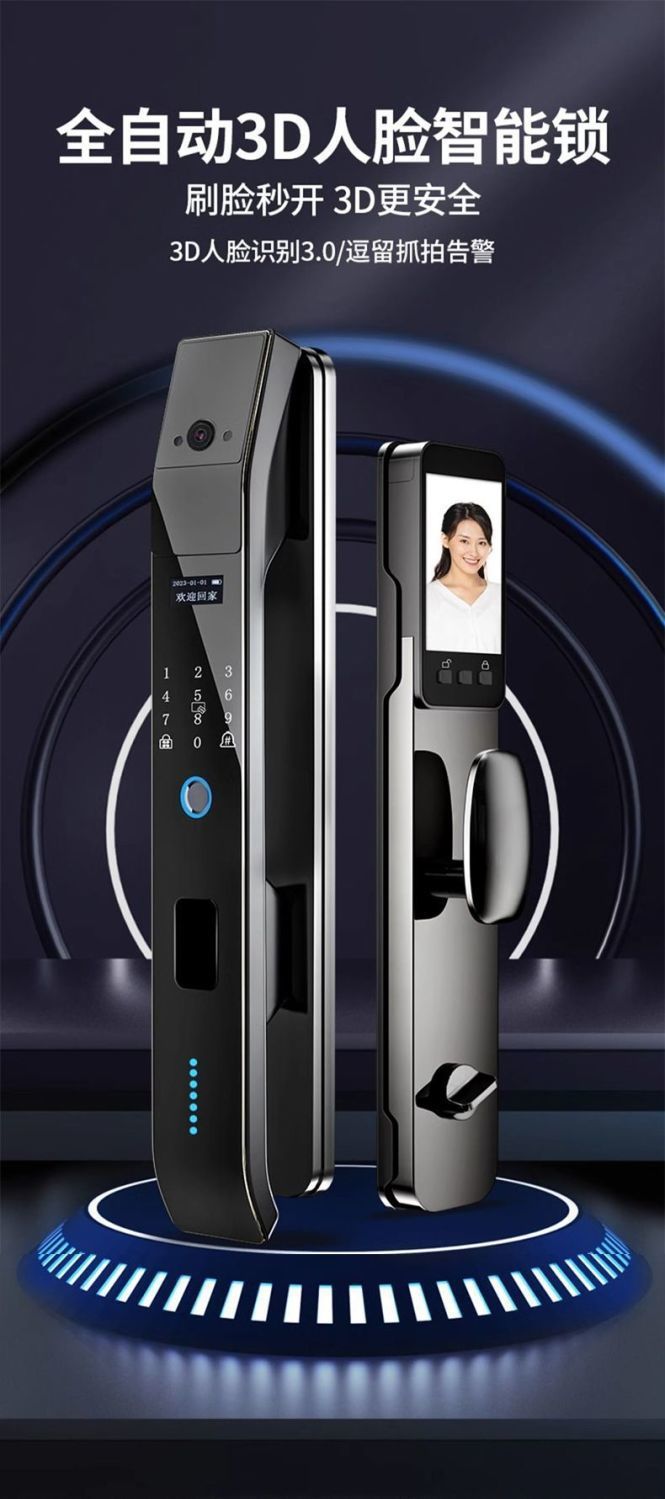 Полностью автоматический смарт-замок с тремя камерами, цифровой анти-кражи, глазок, 3D распознавание лица, домашний парольный замок