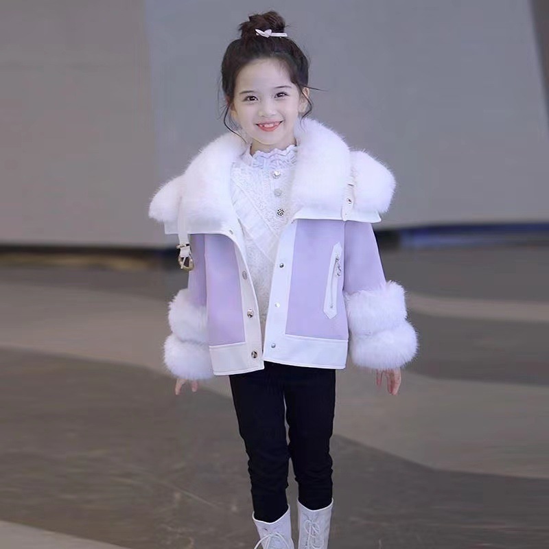 Детское зимнее пальто с флисовой подкладкой для девочек, толстое меховое пальто, осень и зима, кожаная куртка, хлопковая одежда