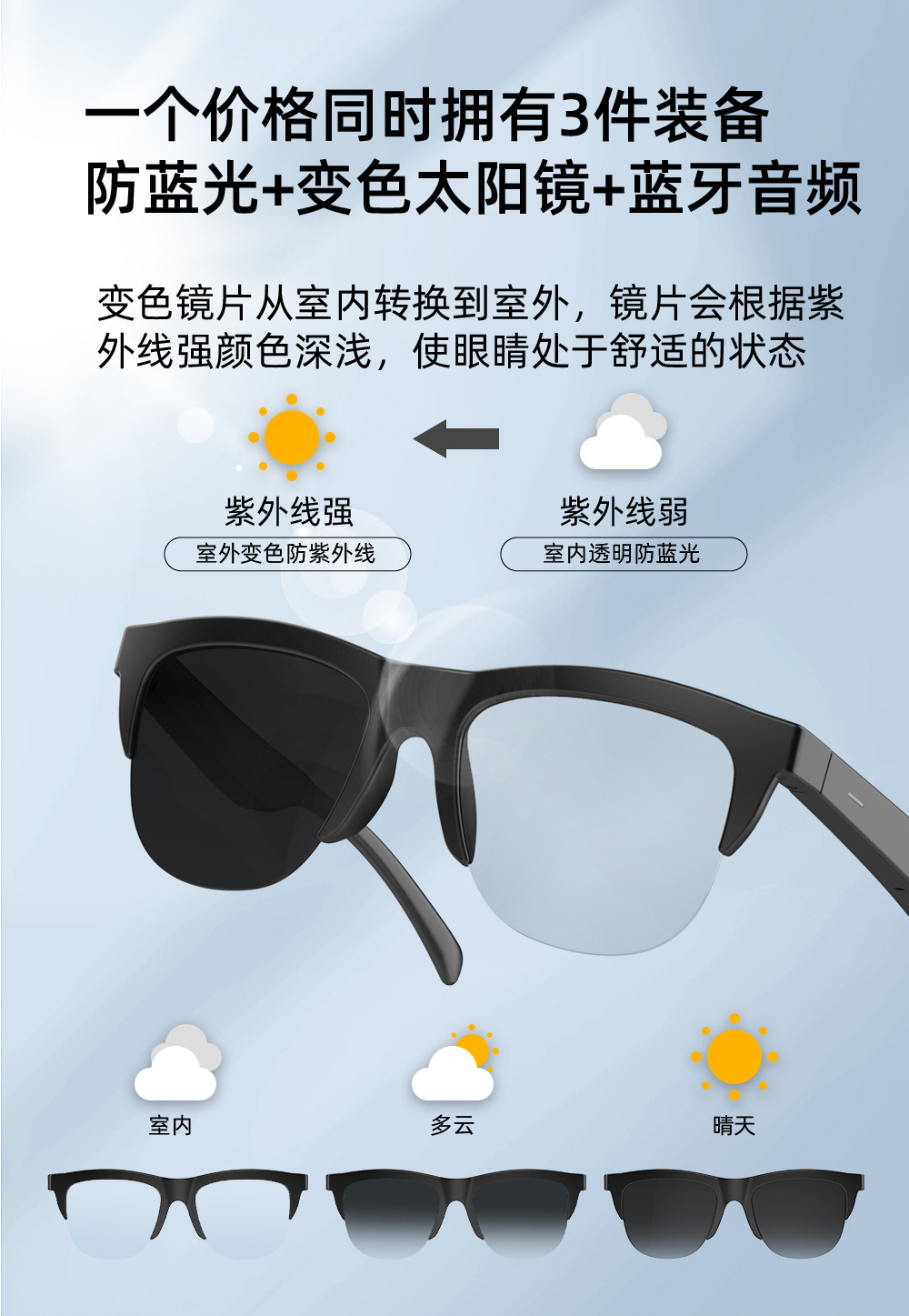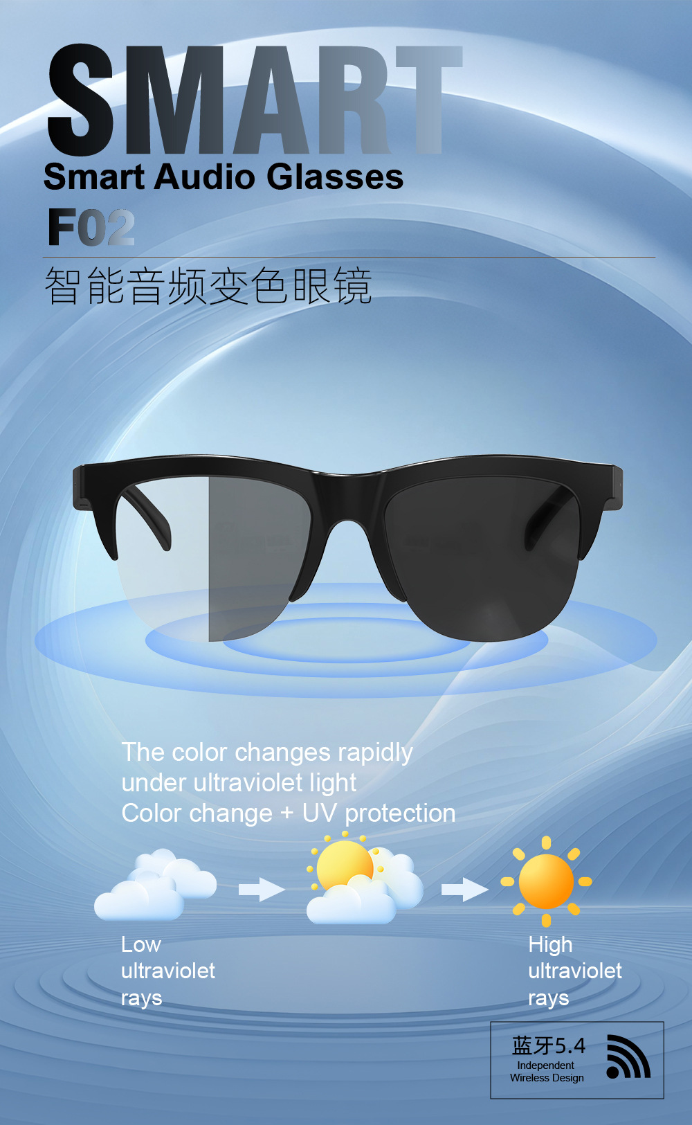 Умные Bluetooth очки F02 для прослушивания музыки, звонков и велоспорта, поляризационные, с ультрадолгой батареей