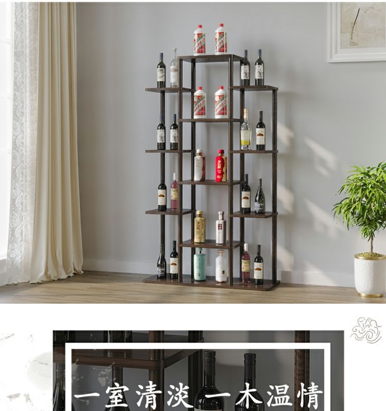 Многоуровневый напольный винный шкаф дисплейный шкаф современный простой интернет-знаменитый винный шкаф из китайского массива дерева для домашнего настенного хранения в гостиной